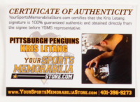 The lot / autograph(s) includes an official Your Sports Memorabilia Store Kris Letang hologram and matching COA for authenticity purposes.