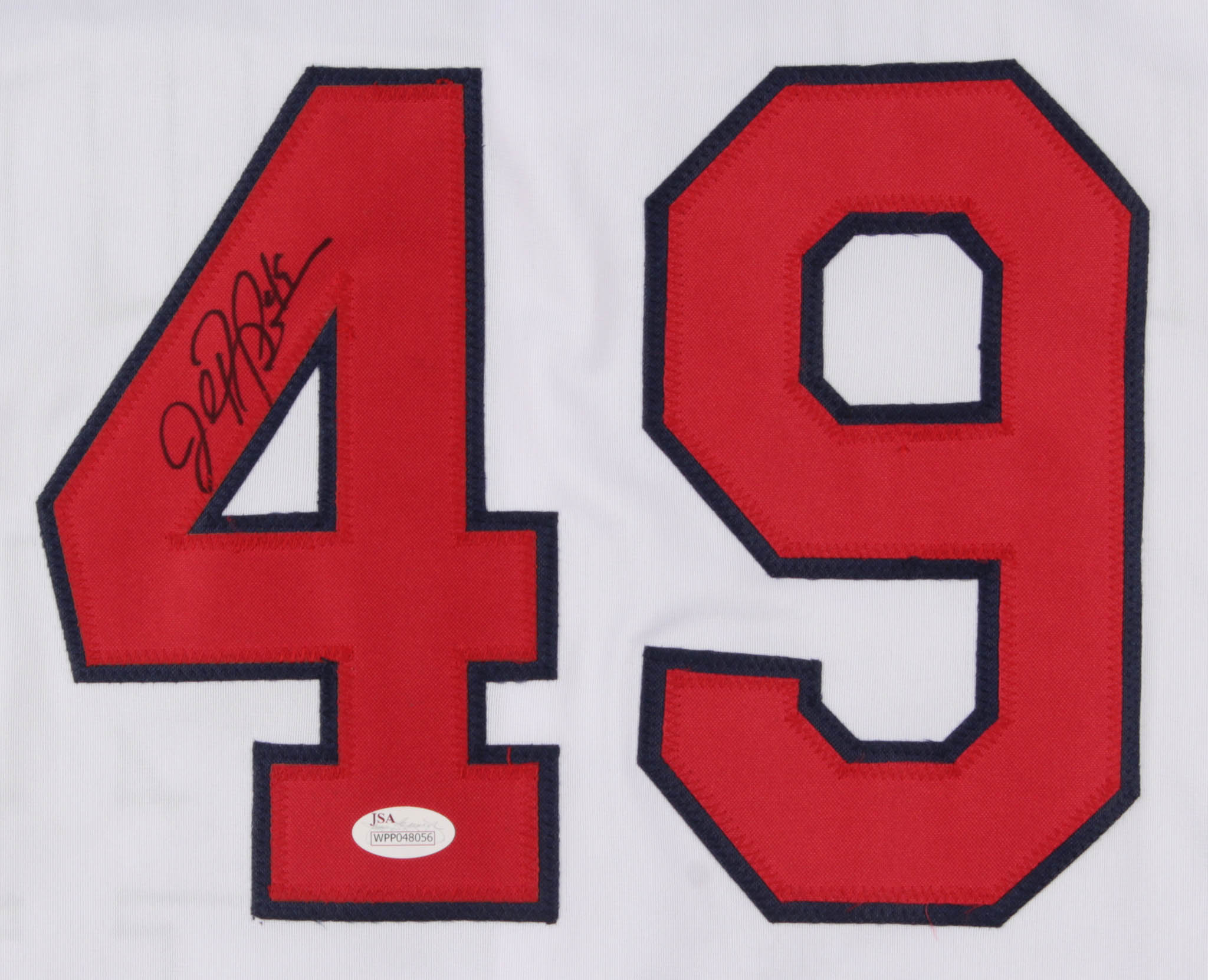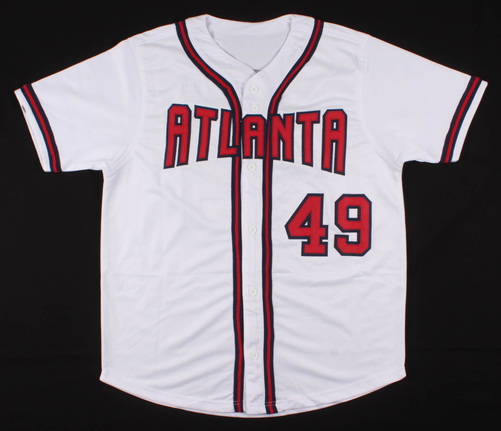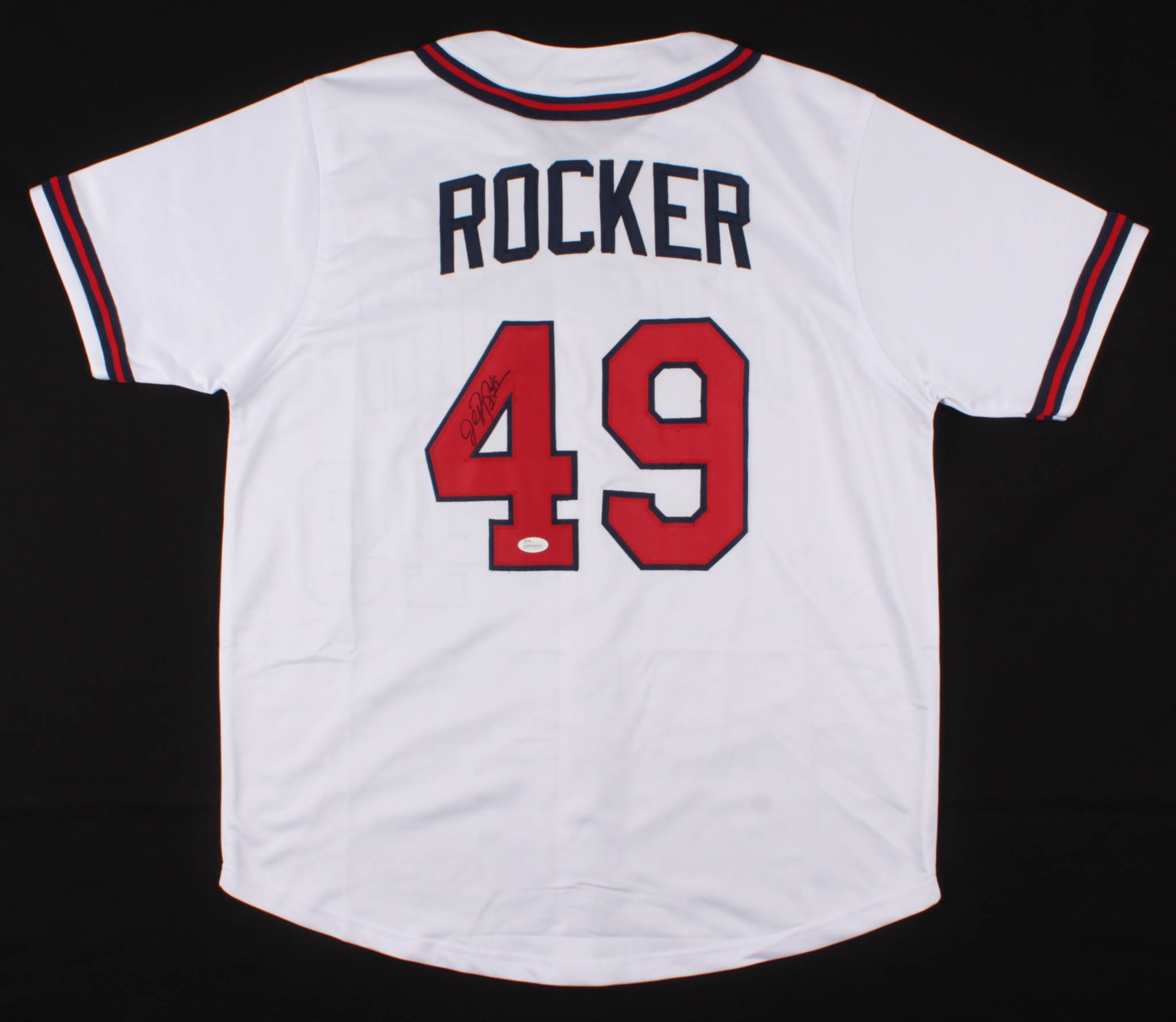 Custom on-field style jersey. Everything is sewn on, size XL. Hand-signed in black felt-tip pen by John Rocker. Please see photos for details regarding the condition of the jersey.