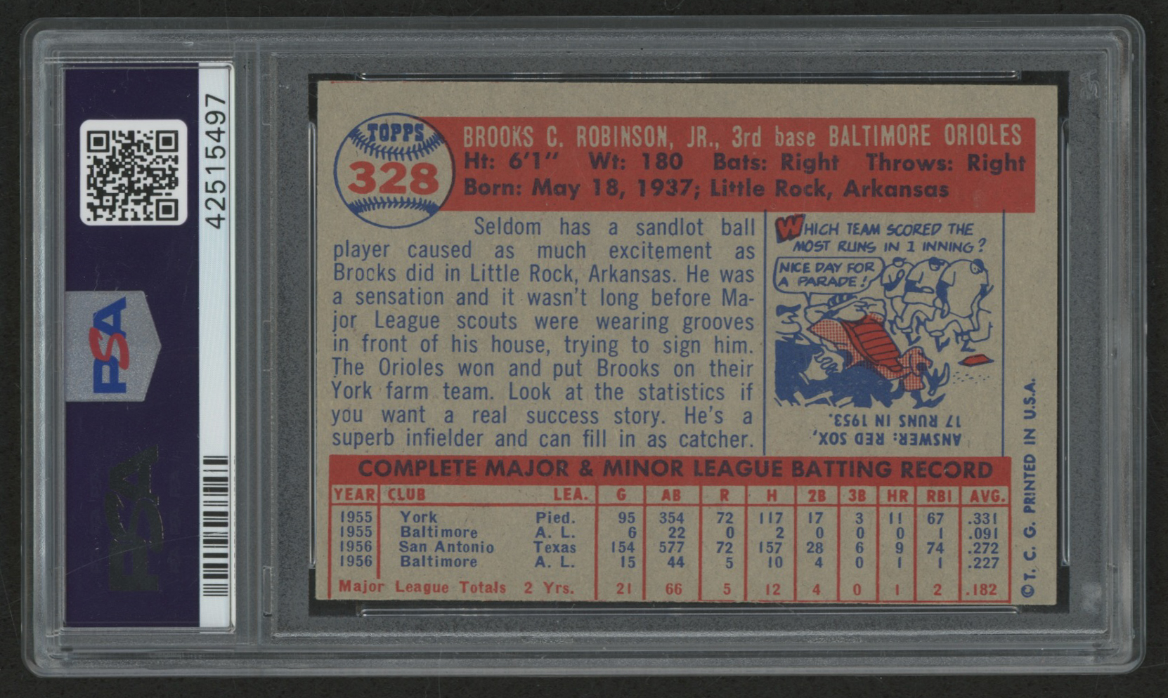 1957 Topps #328 Brooks Robinson RC (PSA 7)(MC)