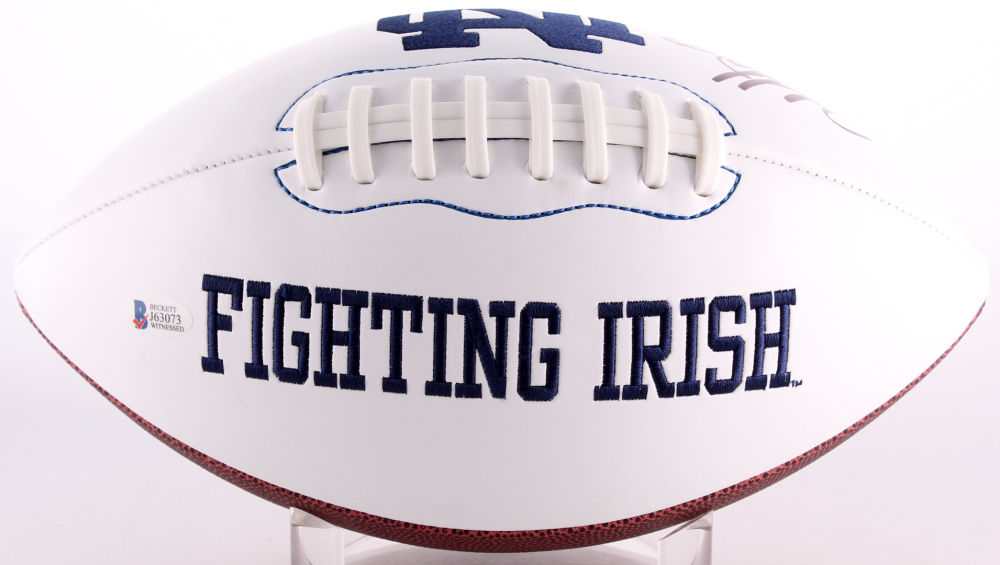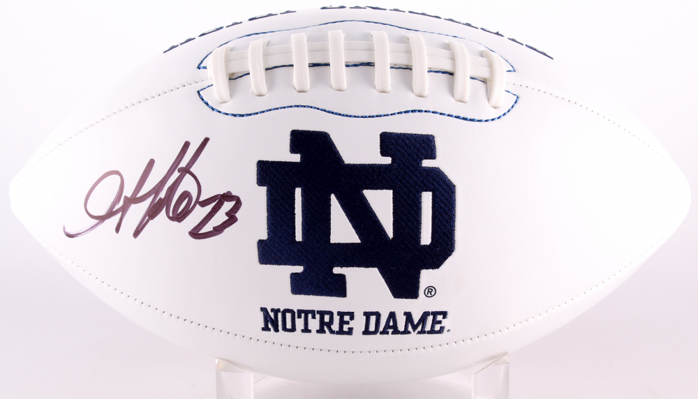 Notre Dame Fighting Irish logo football. Hand-signed in black felt-tip pen by Golden Tate.
