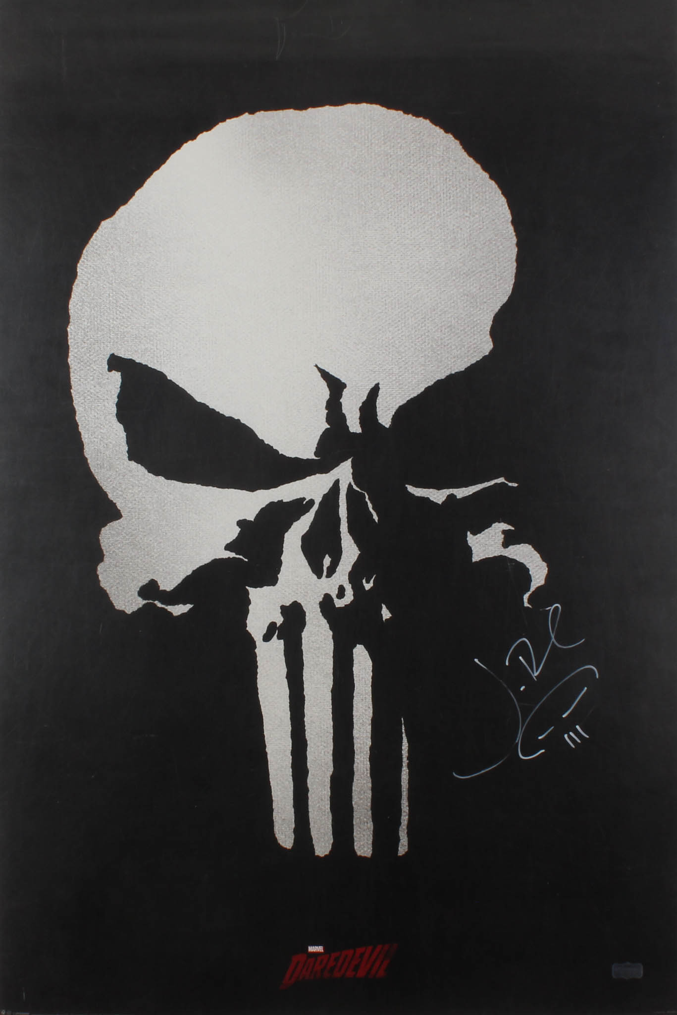 Poster measures 24" x 36" in size. Hand-signed in white paint pen by Jon Bernthal. Bernthal also added an original skull sketch along with his signature.