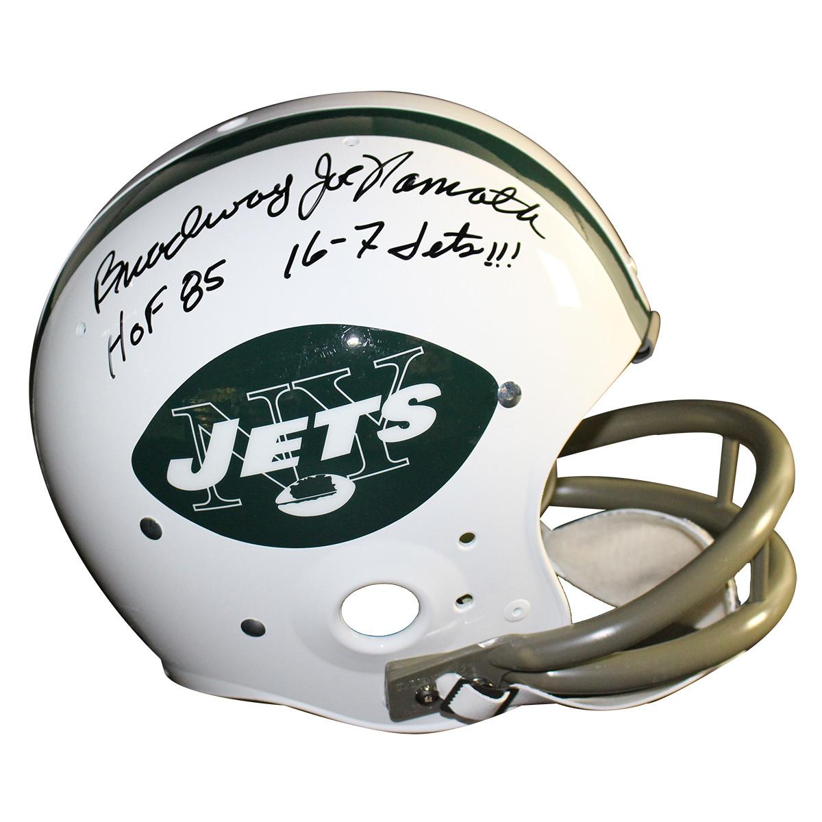 "Broadway" Joe Namath Signed Jets Full Size Throwback Helmet Inscribed "HOF 85" & "16-7 Jets!!!" (Steiner COA)