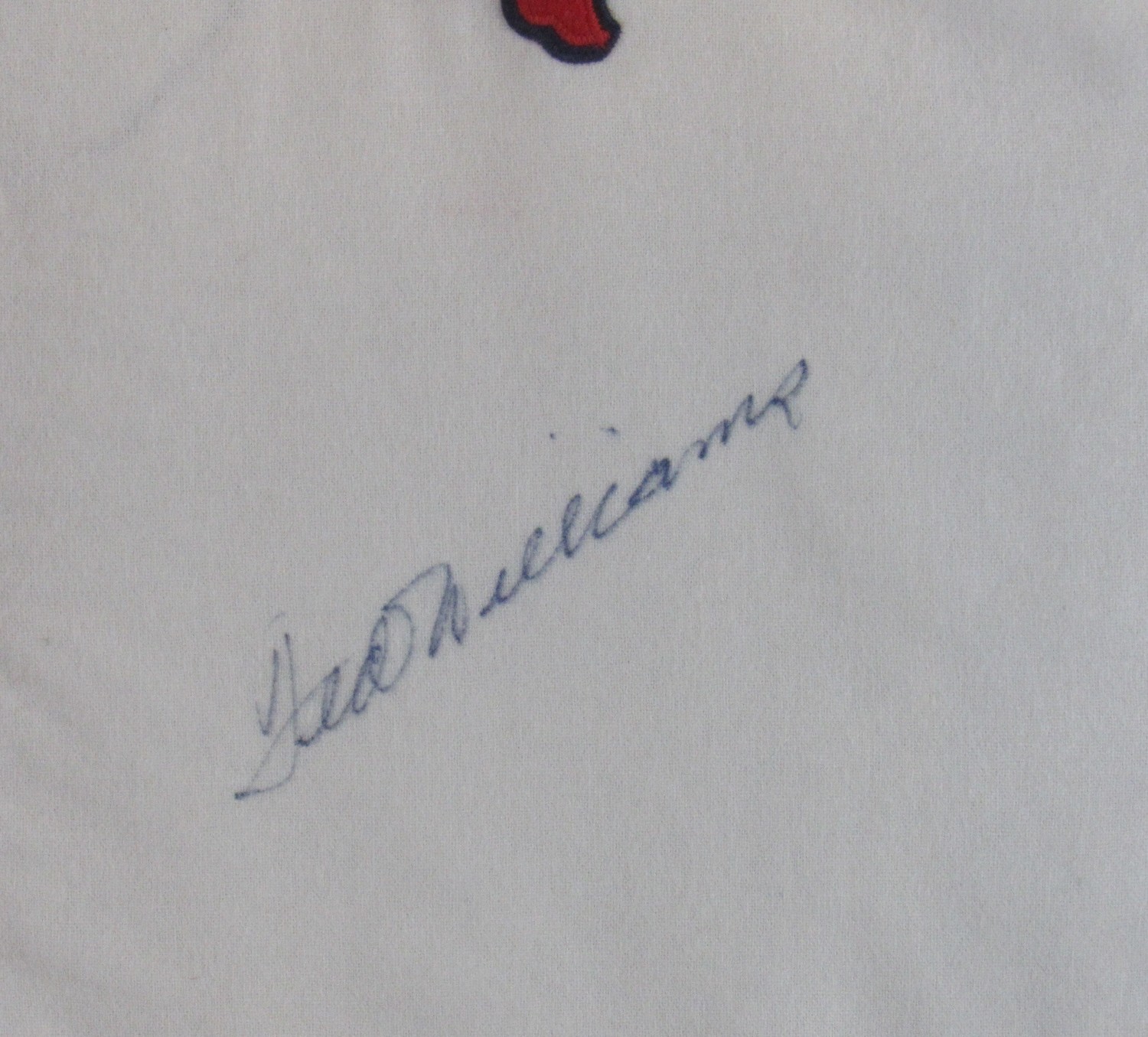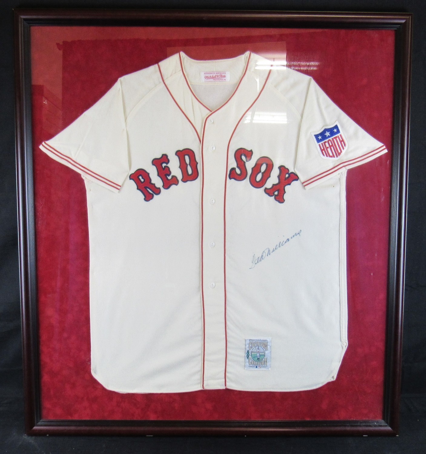 Custom framed jersey measures 39" x 43" in size and has been hand signed in black ink pen by Ted Williams (D. 2002, HOF).