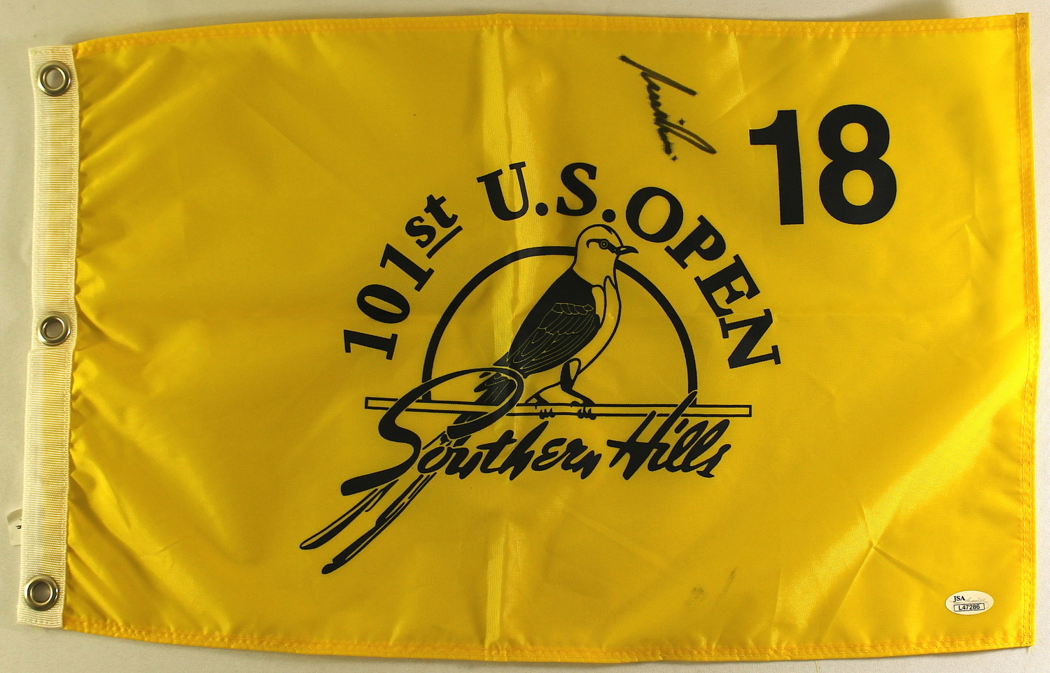 101ST U.S. Open Southern Hills Pin flag. Hand-signed in black felt tip pen by Nick Price. The autograph includes an official James Spence Authentication (JSA) hologram and matching COA for authenticity purposes.