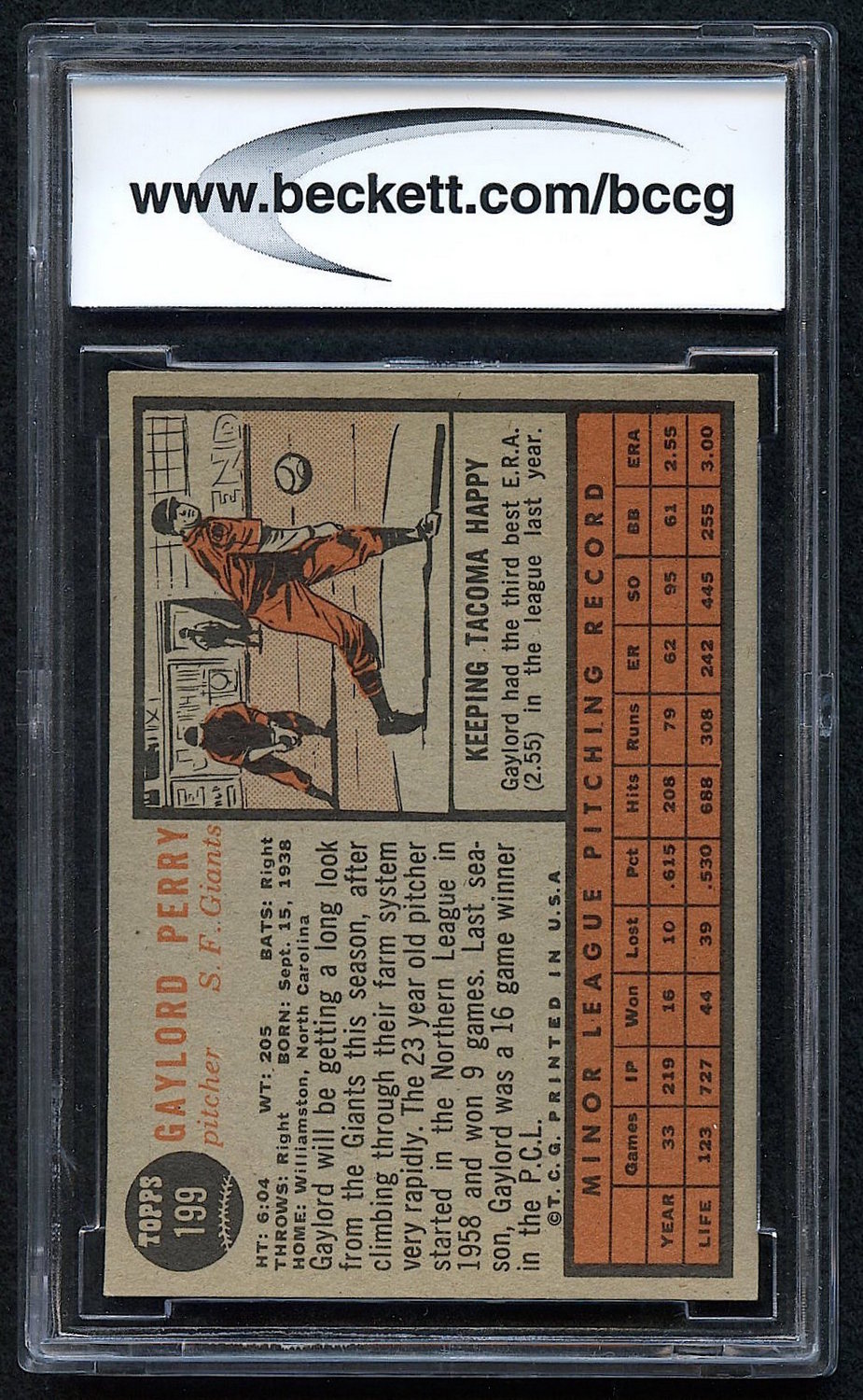 Gaylord Perry 1962 Topps #199 RC (BCCG 9)