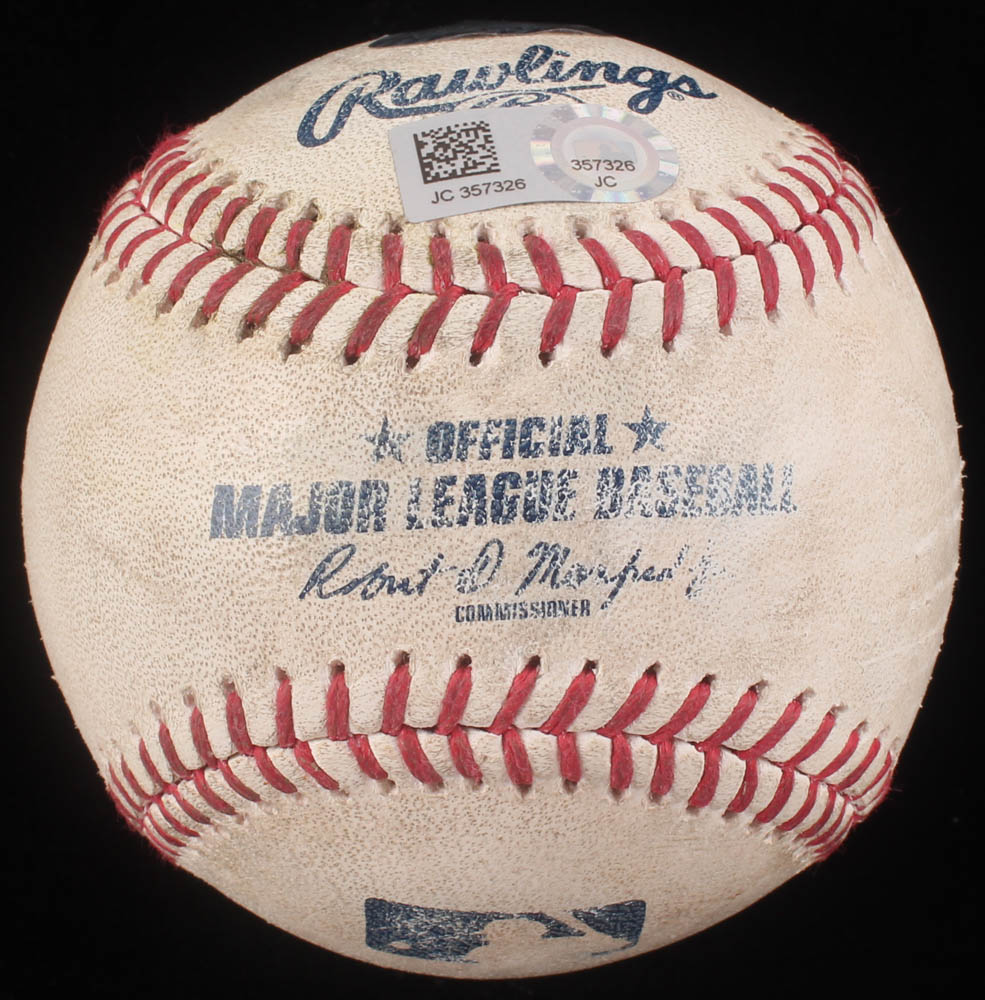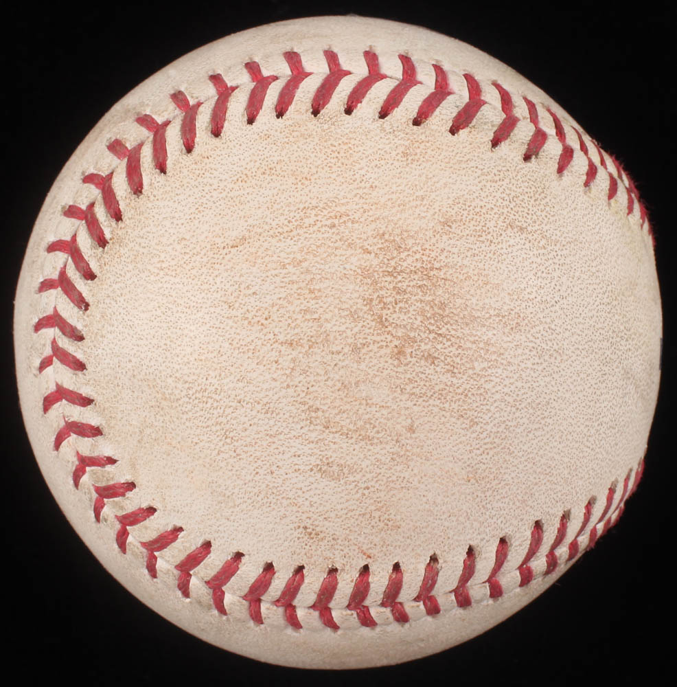 Rawlings Official Major League Baseball was game-used by the Cincinnati Reds at the New York Yankees in July 26, 2017.