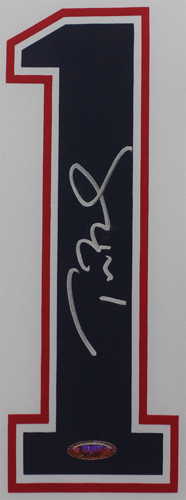 A beautifully framed autographed Tom Brady Patriots Jersey. The autograph was certified by Tristar Authentic and includes a sticker on the Jersey and a matching certificate attached to the back of the frame.