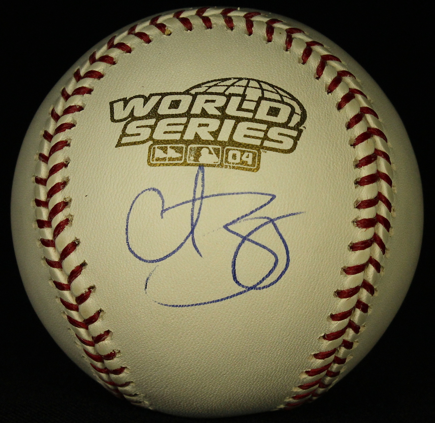 Official 2004 World Series Baseball has been hand-signed in blue ink pen by Curt Schilling (Red Sox, Diamondbacks). The autograph includes an official Steiner hologram and matching COA for authenticity purposes.