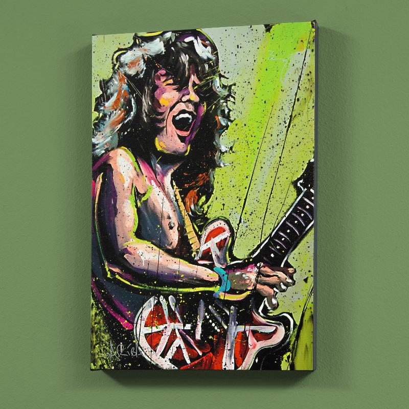 .Combining his passions for music and art, David Garibaldi creates stunning visual poetry. "Eddie Van Halen (Eddie)" is a limited edition giclee on stretched canvas, numbered and bearing the artist's authorized signature. This piece comes gallery wrapped. Includes Certificate of Authenticity! Measures approx. 30" x 40" (image).