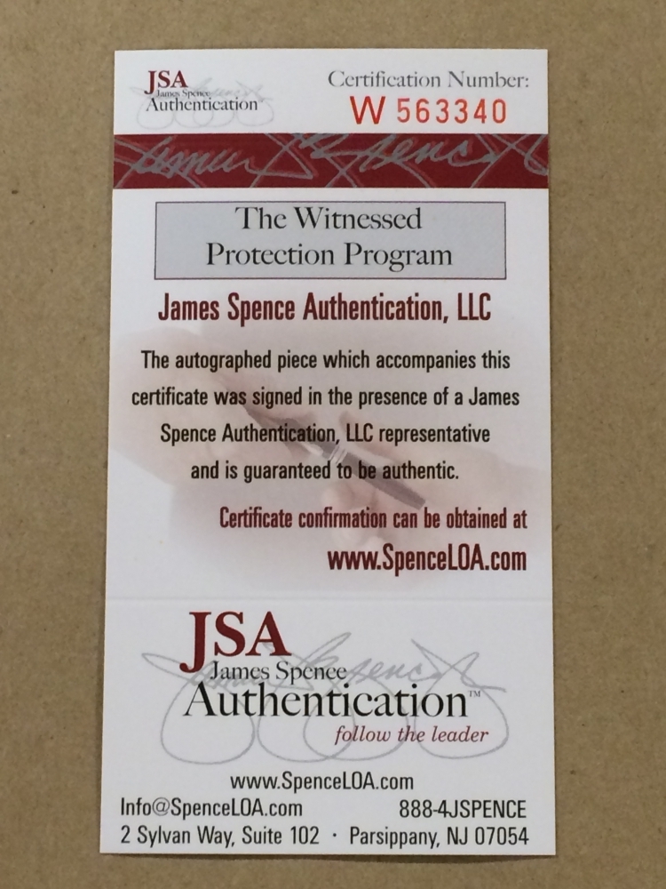 The autograph includes an official James Spence Authentication (JSA) hologram and matching COA for authenticity purposes. The signing of this item was witnessed by JSA.