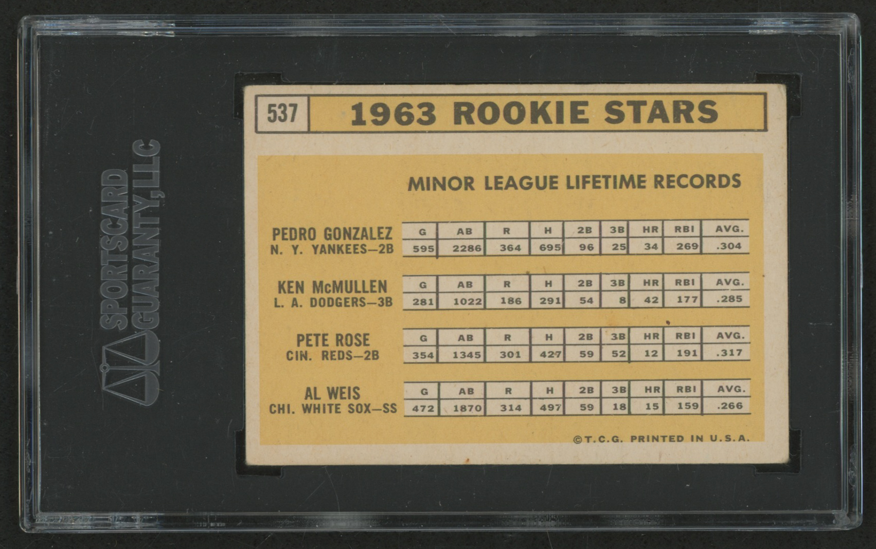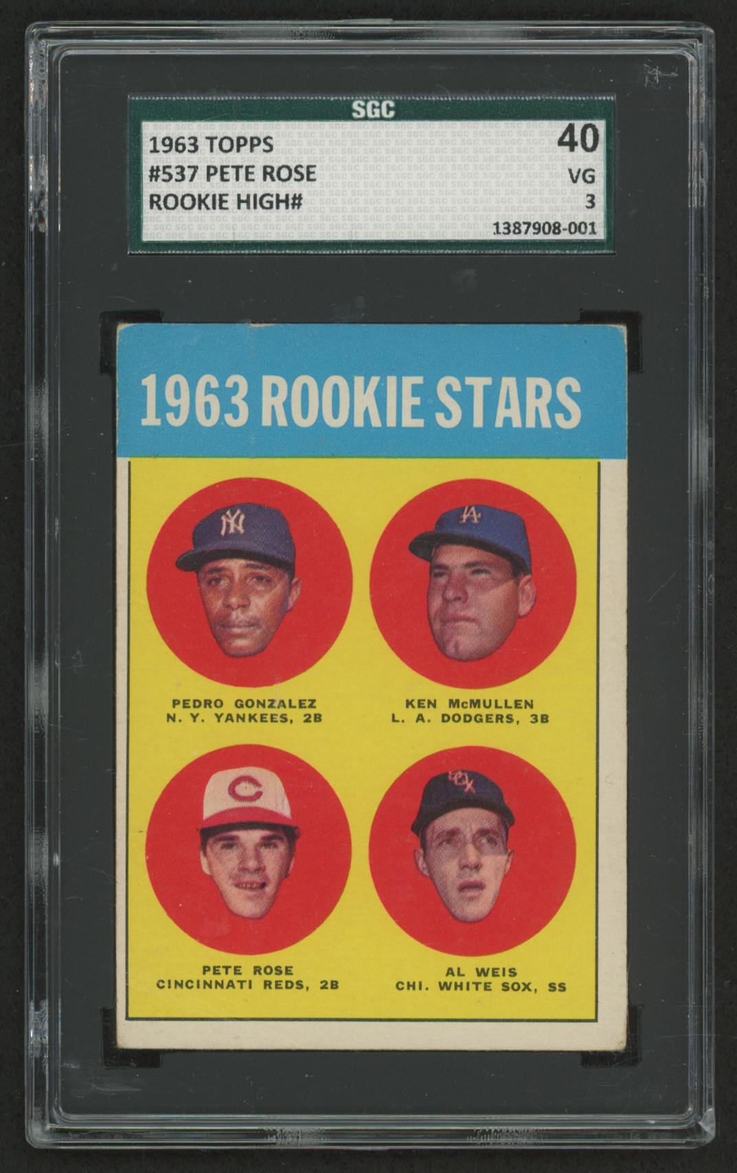 1963 Topps #537 Rookie Stars Pedro Gonzalez RC / Ken McMullen RC / Al Weis RC / Pete Rose RC (SGC 3)