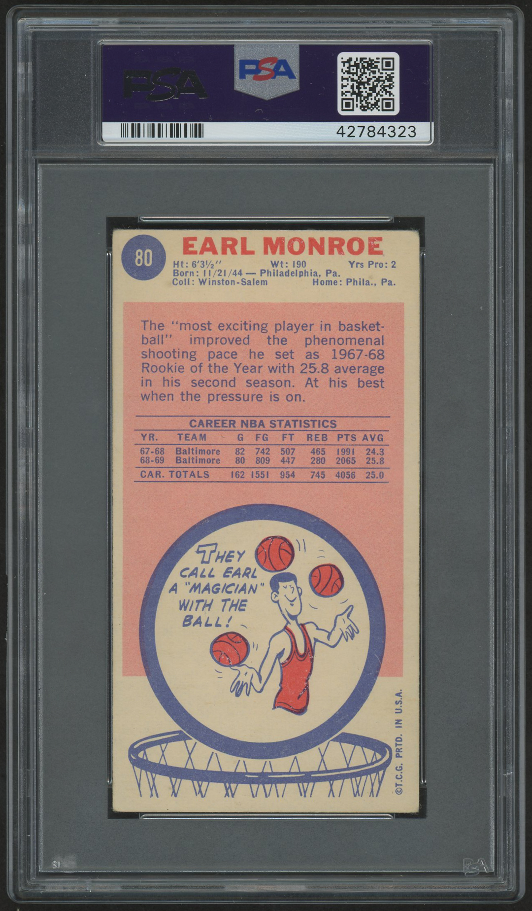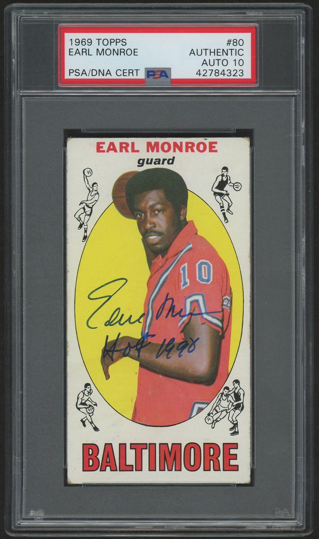 1969-70 Topps #80 RC has been hand-signed and inscribed in blue ink pen by Earl Monroe (Baltimore Bullets, HOF). The autograph has been graded (PSA) 10. Please see scans for details regarding the condition of the card.