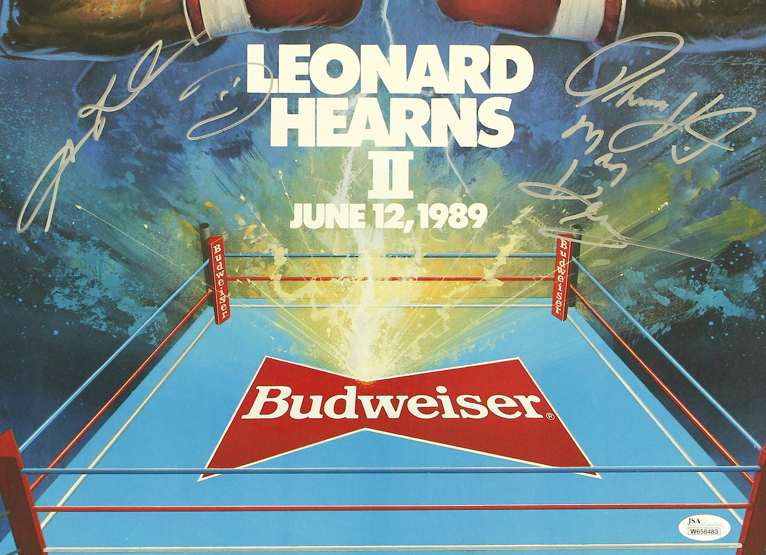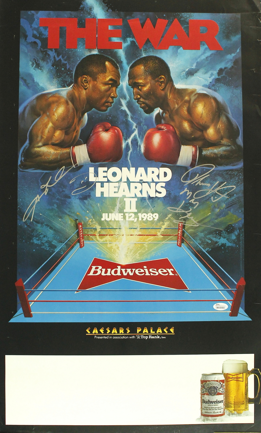 Sugar Ray Leonard & Tommy Hearns Signed 18x30 Fight Poster (JSA COA)