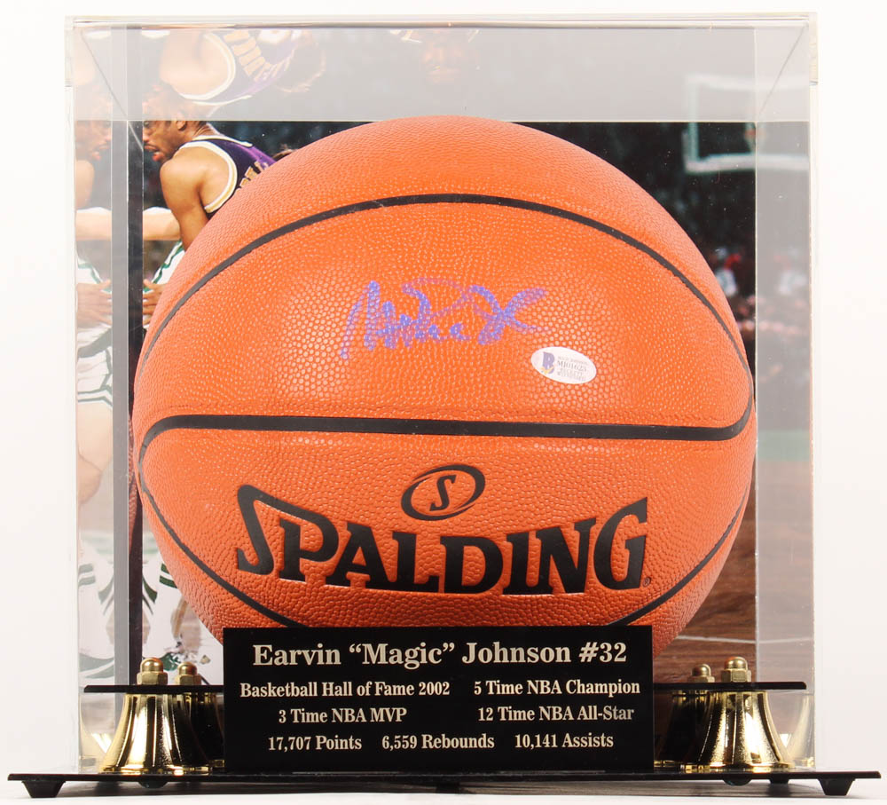 Magic Johnson Signed NBA Game Ball Series Basketball With High Quality Display Case (Beckett COA)