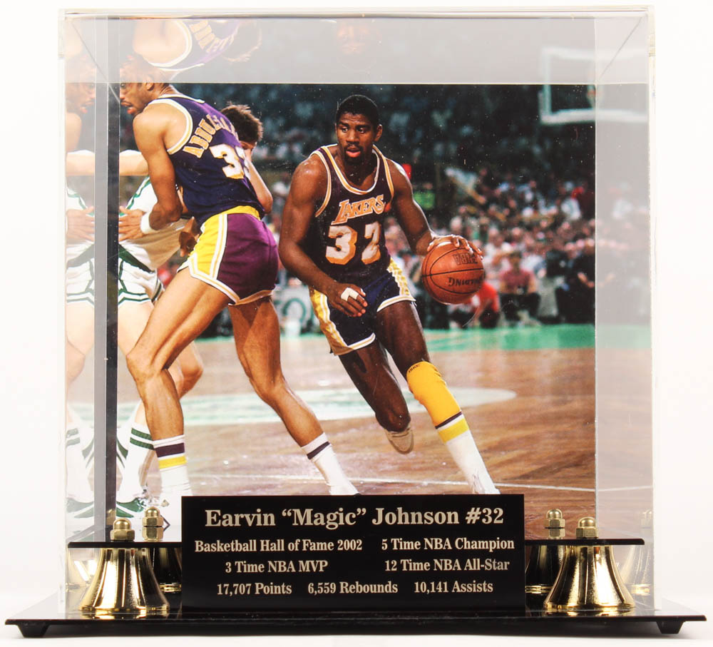 Also included with this lot is a Magic Johnson Career Highlight Stat Display Case.