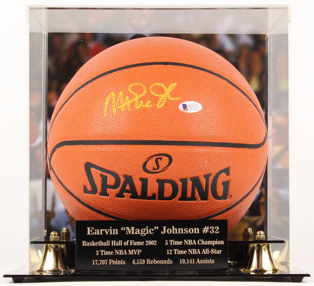 Magic Johnson Signed NBA Game Ball Series Basketball With High Quality Display Case (Beckett COA)