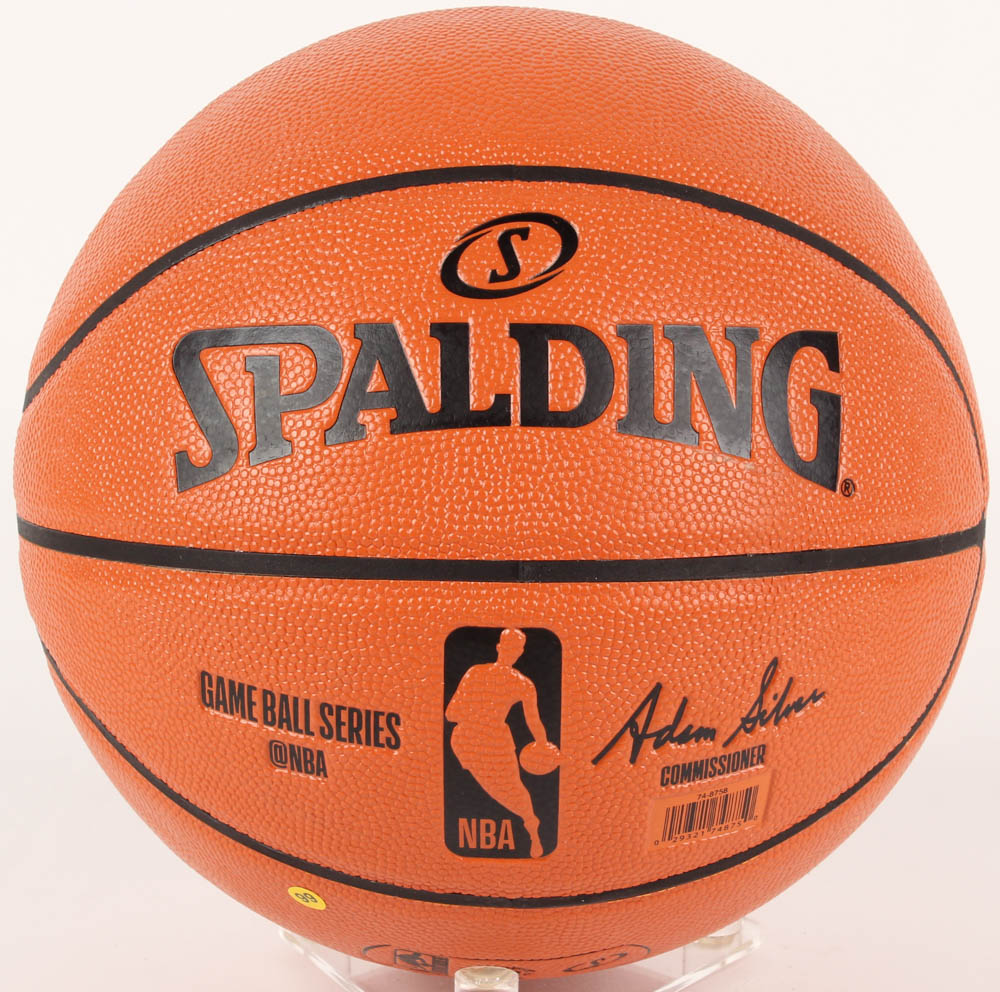 Spalding NBA Game Ball Series Basketball. Hand-signed in yellow paint pen by Magic Johnson (Los Angeles Lakers, HOF).