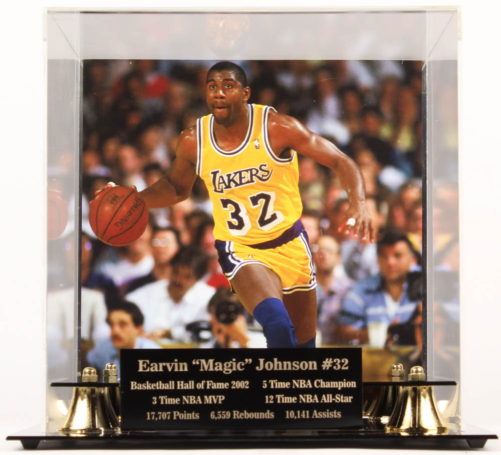Also included with this lot is a Magic Johnson Career Highlight Stat Display Case.