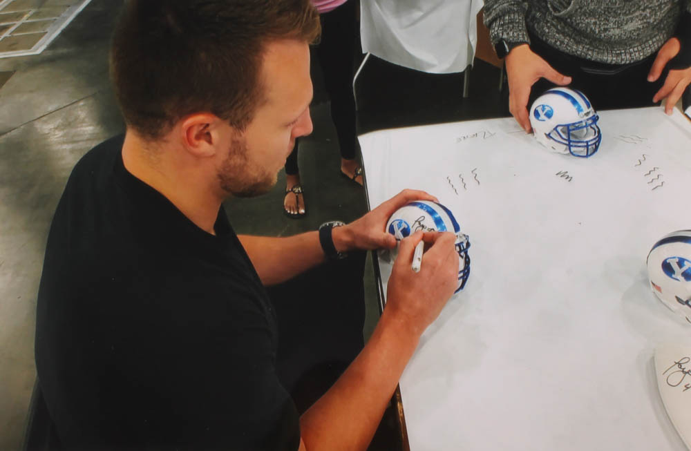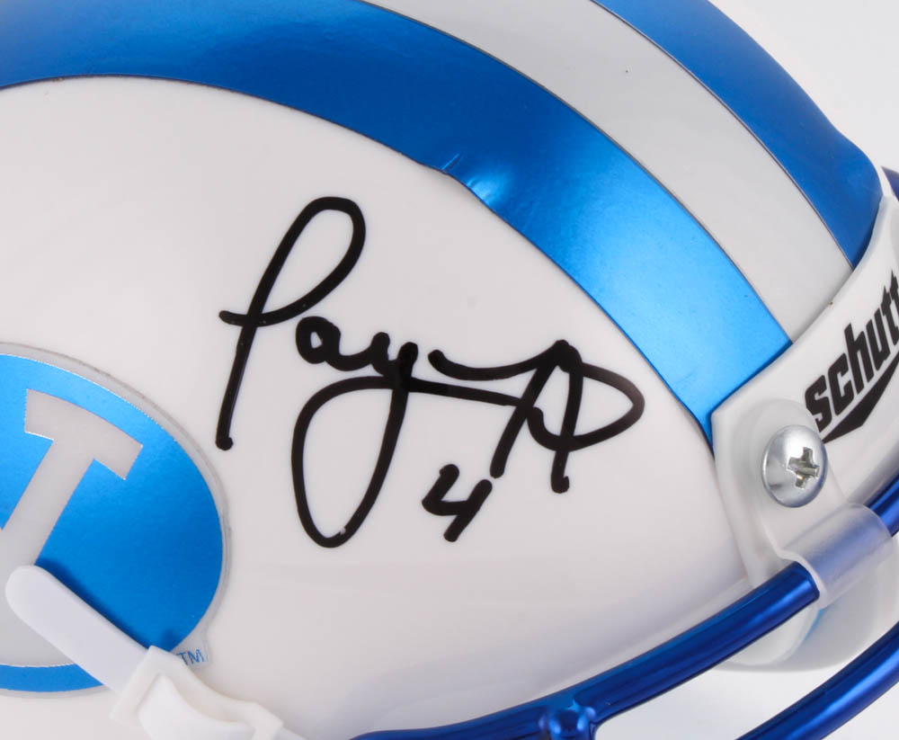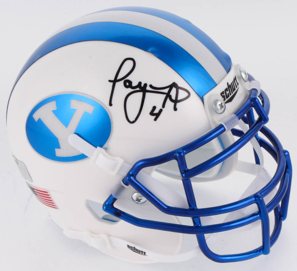 Schutt BYU Cougars mini-helmet. Hand-signed in black felt-tip pen by Taysom Hill. Please see photos for details regarding the condition of the helmet.
