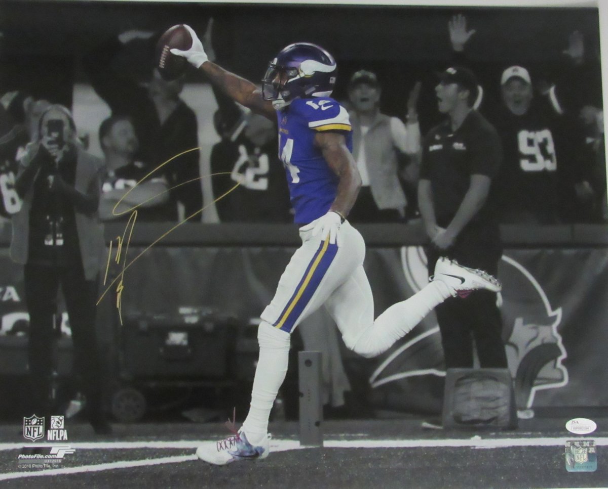 Photo measures 16" x 20" in size and has been hand-signed in yellow paint pen by Stefon Diggs.