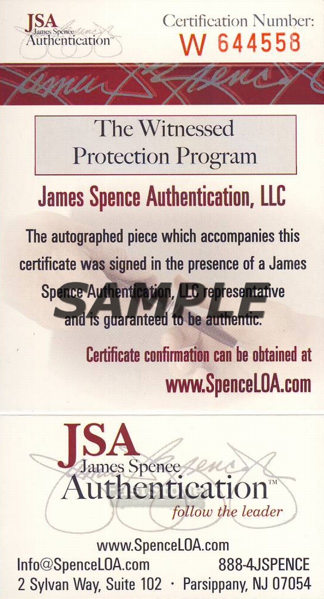 The lot / autograph(s) includes an official James Spence Authentication (JSA) hologram and matching COA for authenticity purposes. The signing of this item was witnessed by JSA.