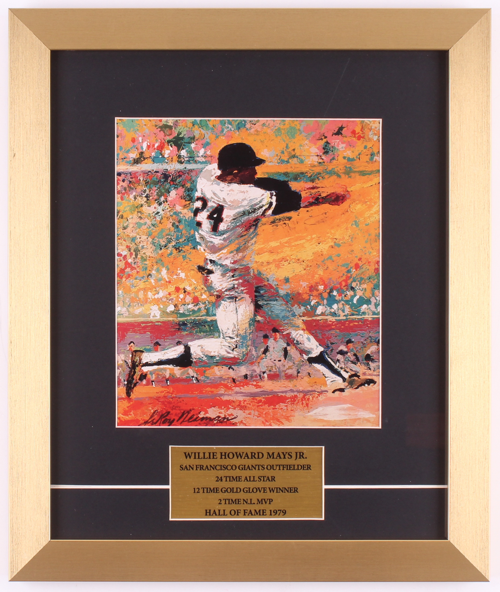 Custom frame measures 13.5" x 16" in size and features a LeRoy Neiman print of Willie Mays (HOF).