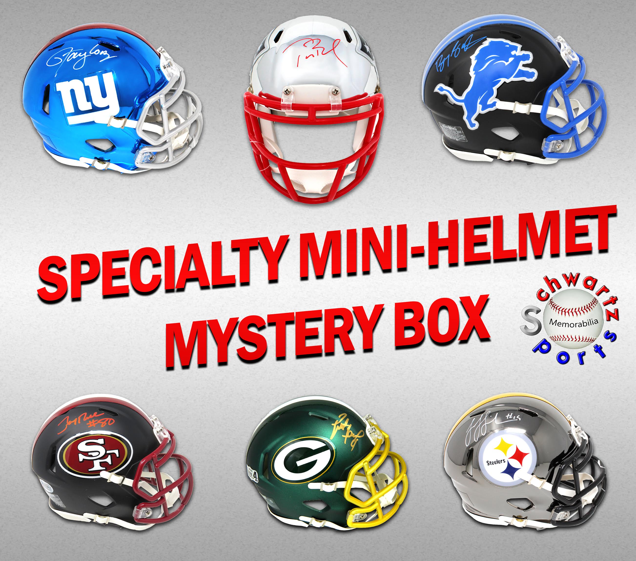 There is no guarantee as to which of the above Players you will receive, as mini helmets were randomly inserted into the Mystery Boxes and are shipped out at random.