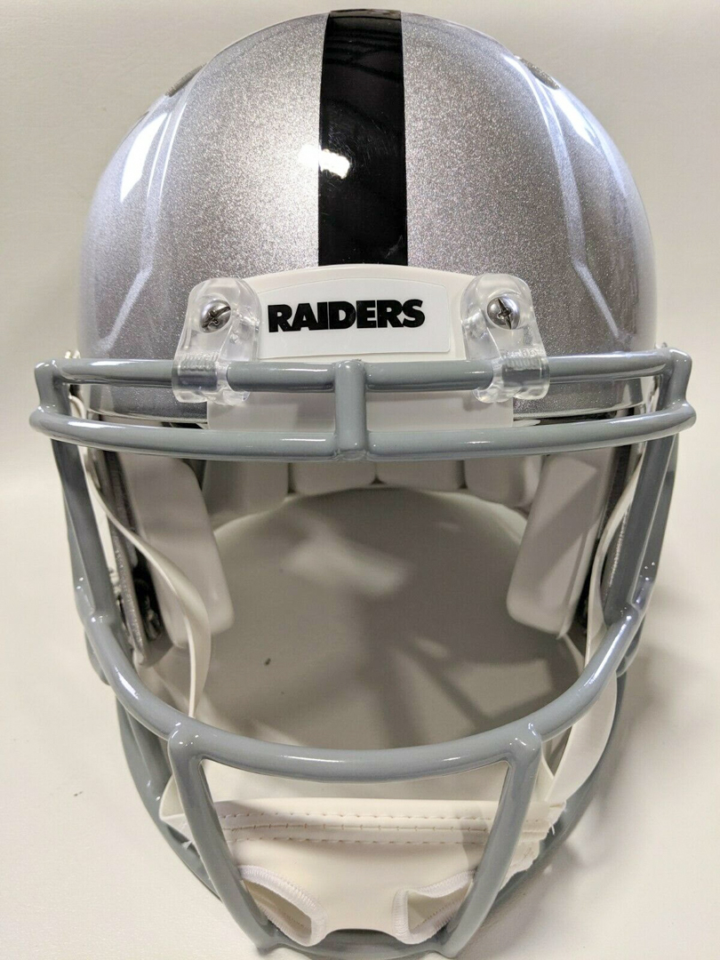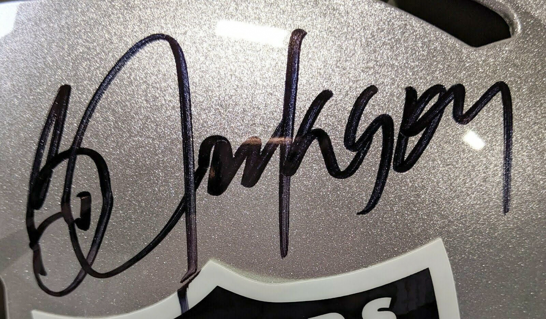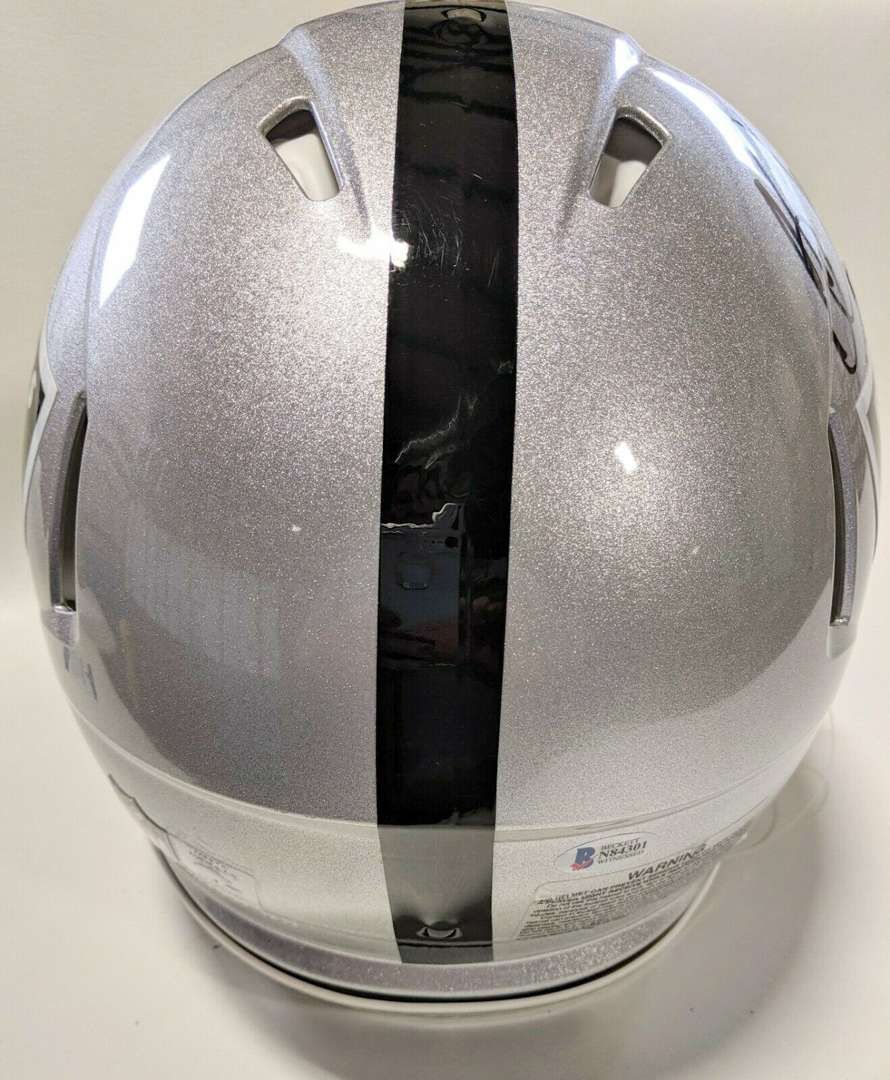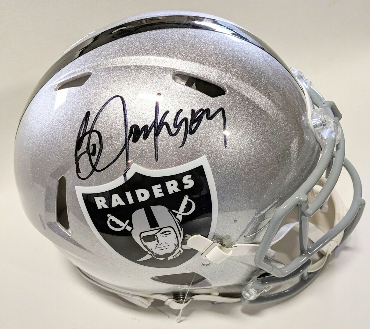 Oakland Raiders full-size authentic on-field Speed helmet. Hand-signed in black felt-tip pen by Bo Jackson.