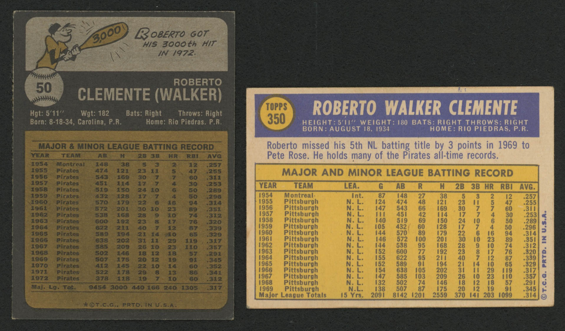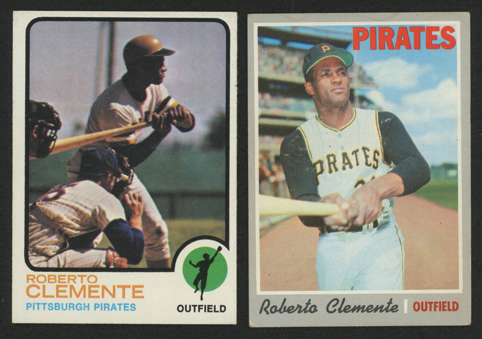 Lot of (2) Roberto Clemente Baseball Cards with 1973 Topps #50 & 1970 Topps #350