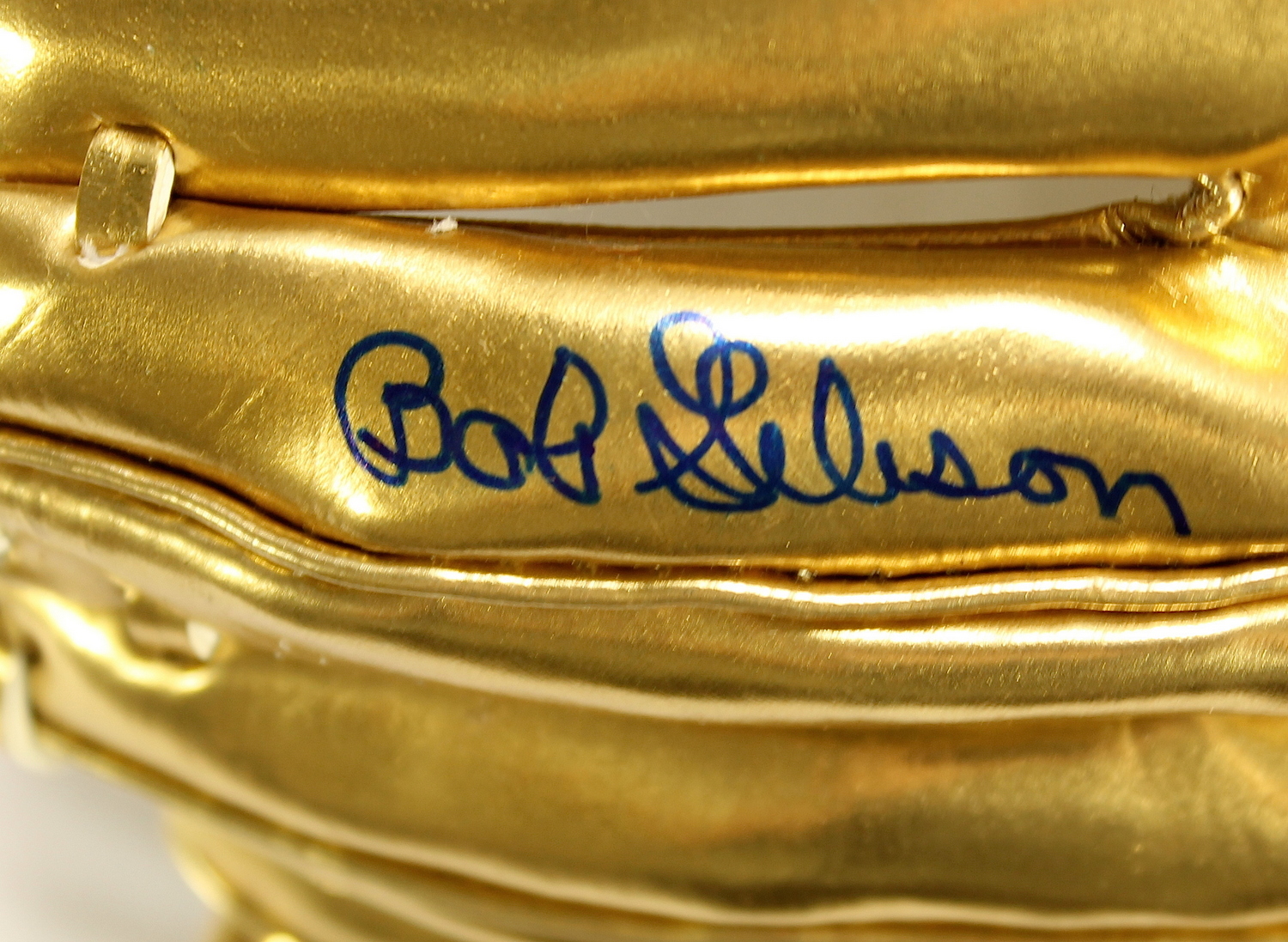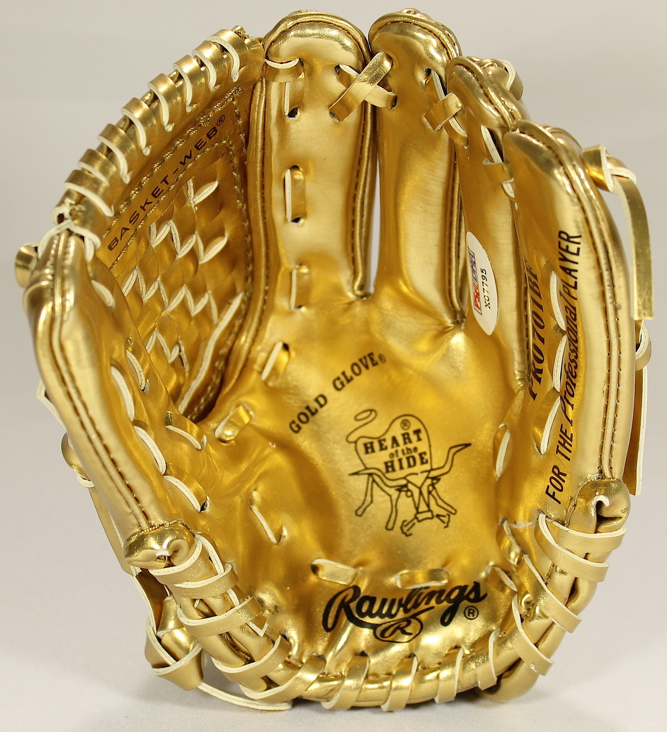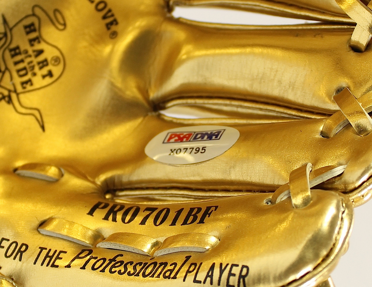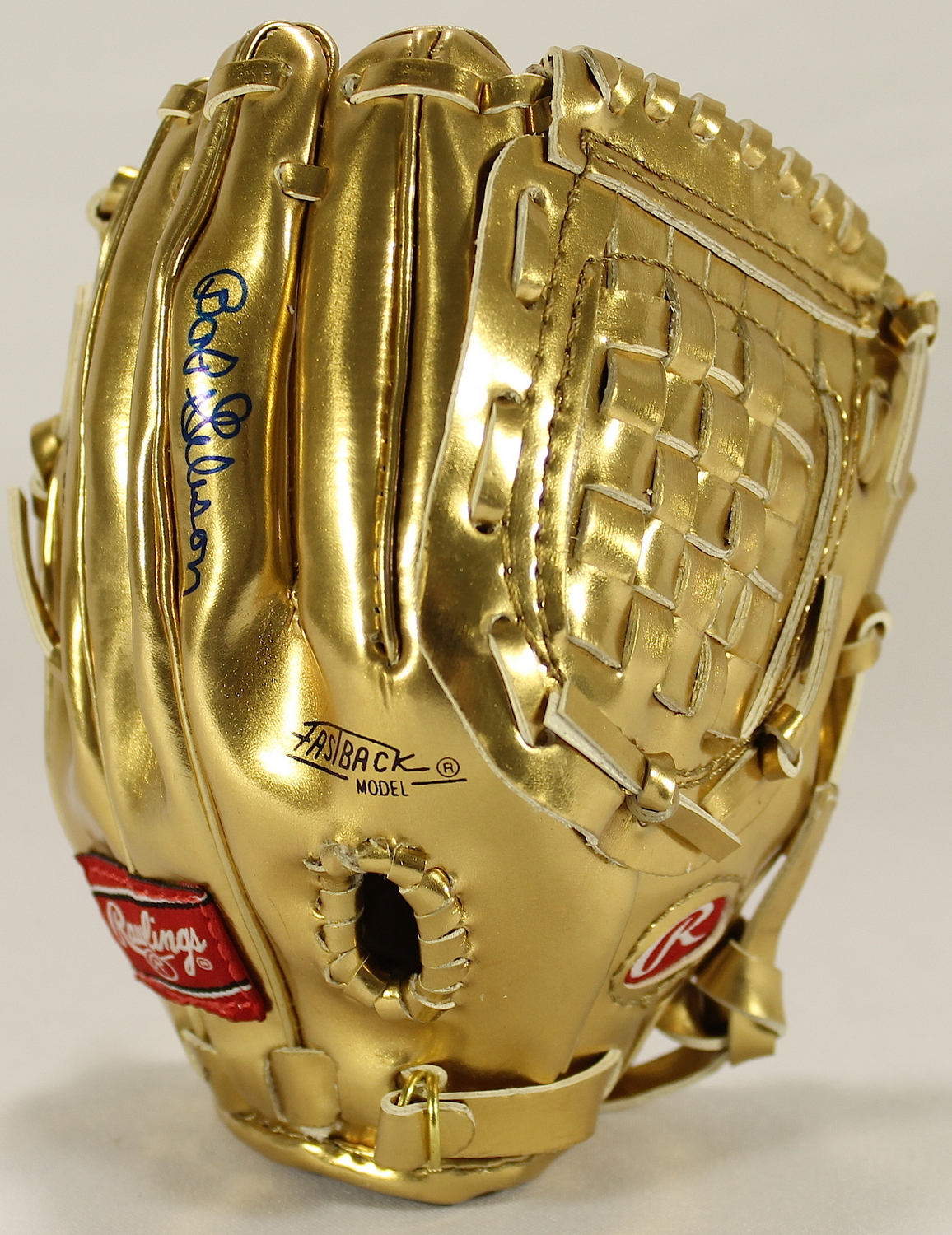 Rawlings "The Gold Glove Co." mini baseball glove. The glove measures roughly 6" long. Hand-signed in blue felt tip pen by Bob Gibson (Cardinals HOF). Autograph includes an official PSA/DNA Hologram and matching COA for authenticity purposes.