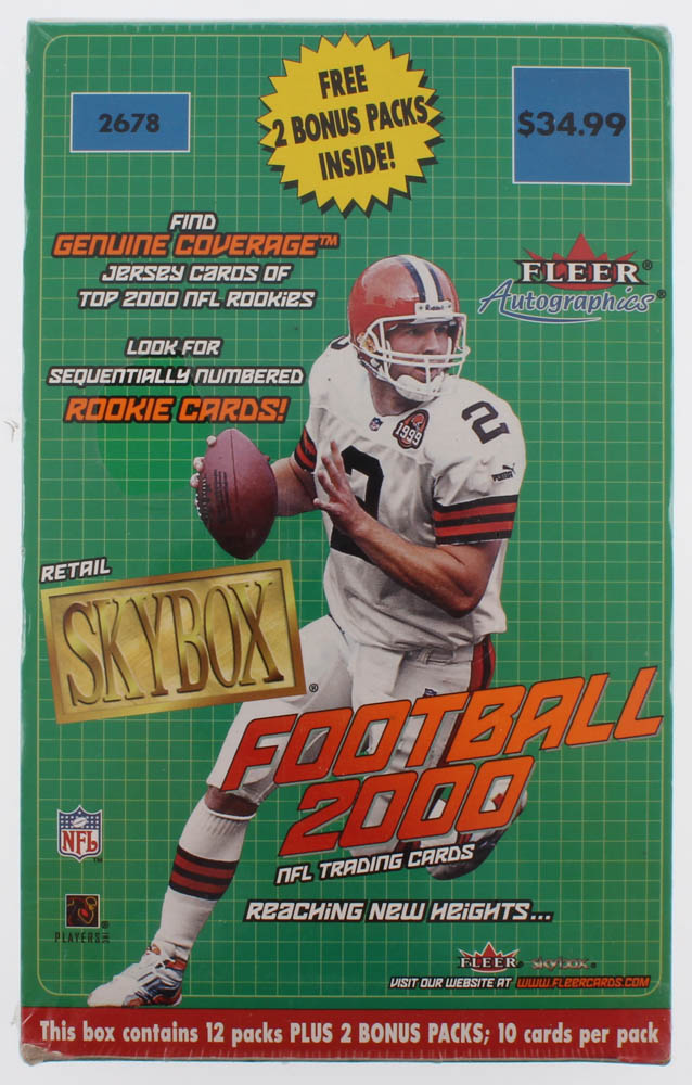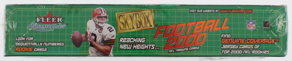 2000 Fleer Skybox Football Hobby Box Set of (14) Football Card packs with (10) cards in each. See photos for more details regarding the card box. Please note, factory seal holds slight tears.
