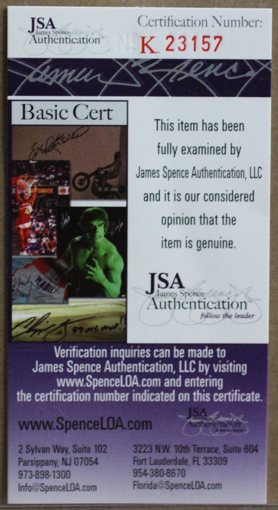 The jersey includes an official James Spence Authentication (JSA) hologram and matching COA for authenticity purposes.