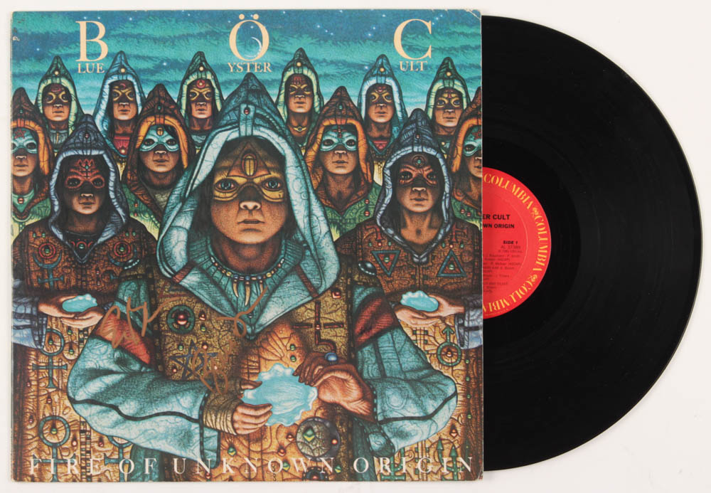 "Fire of Unknown Origin" vinyl record album has been hand-signed in gold paint tip pen by Eric Bloom and Buck Dharma. Please note, the vinyl record is included.