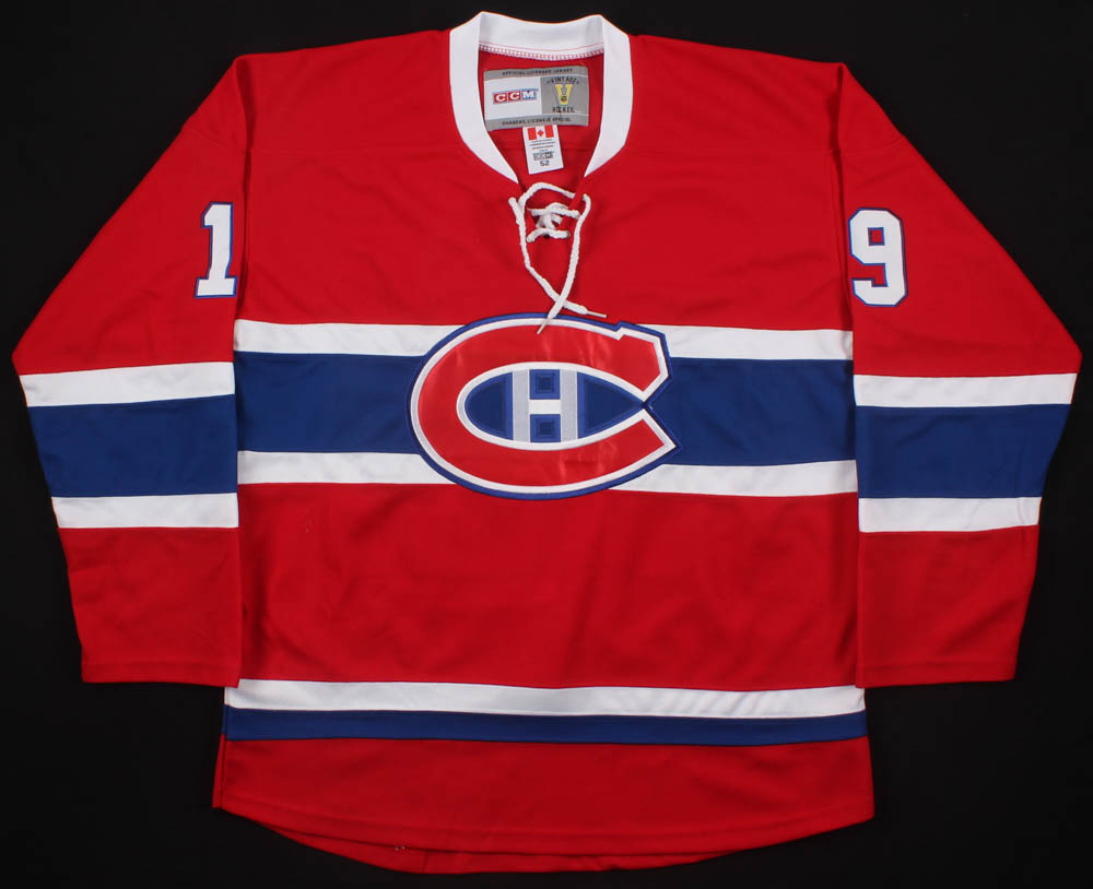 CCM Vintage on-ice style jersey. Everything is sewn on, size 52. Hand-signed in black felt tip pen by Larry Robinson (HOF).