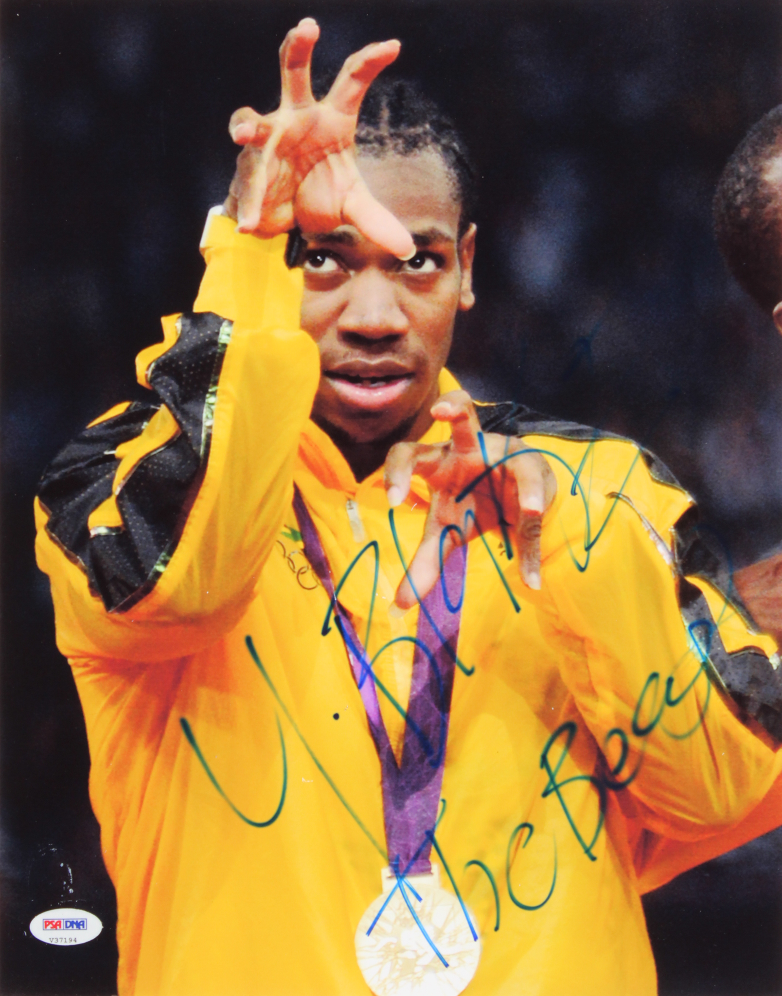 Photo measures 11" x 14" in size and has been hand-signed in blue felt-tip pen by Yohan Blake. Please see scans for details regarding the condition of the photo.