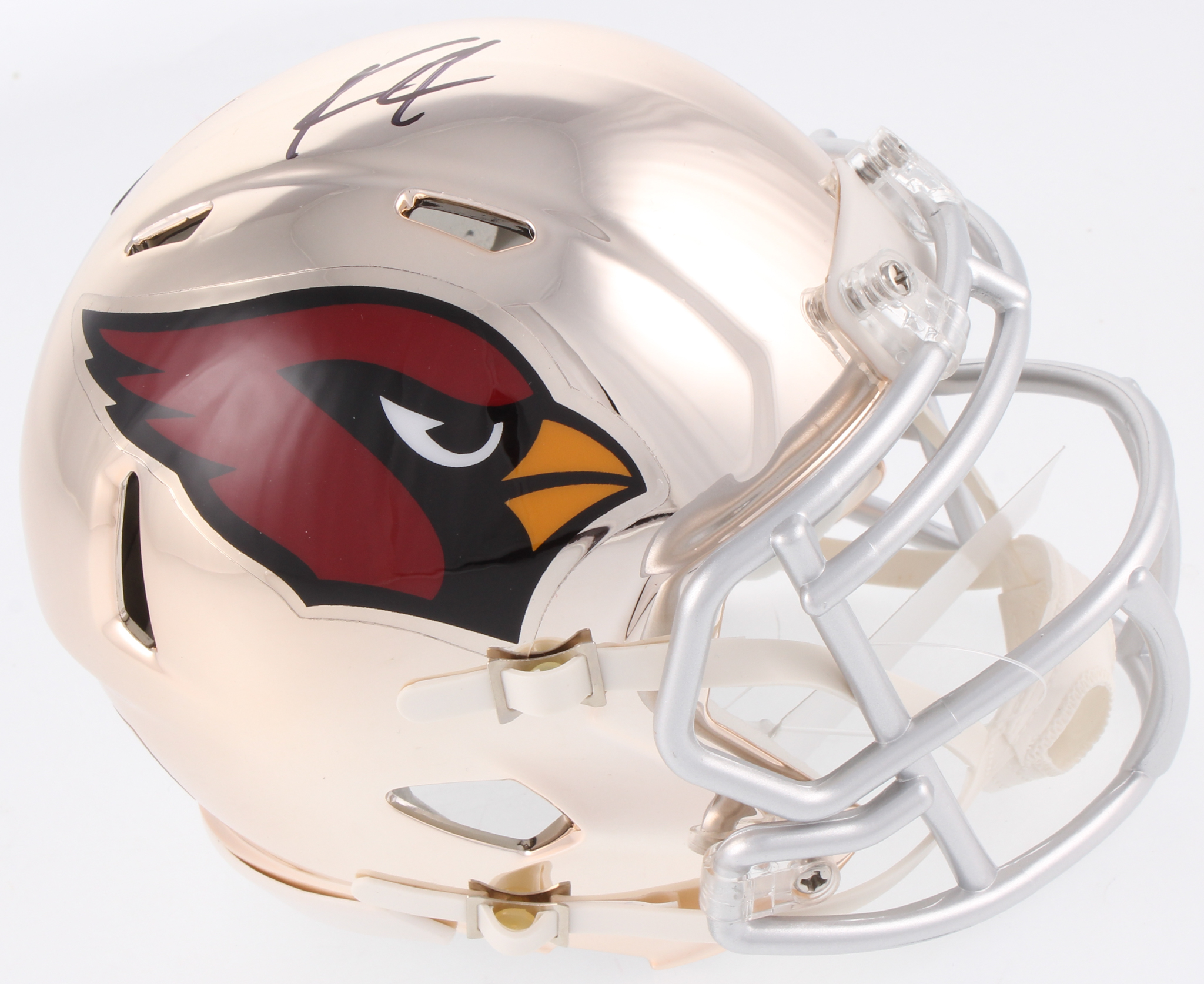 Riddell Arizona Cardinals Chrome Speed mini helmet has been hand-signed in black felt-tip pen by Kyler Murray.