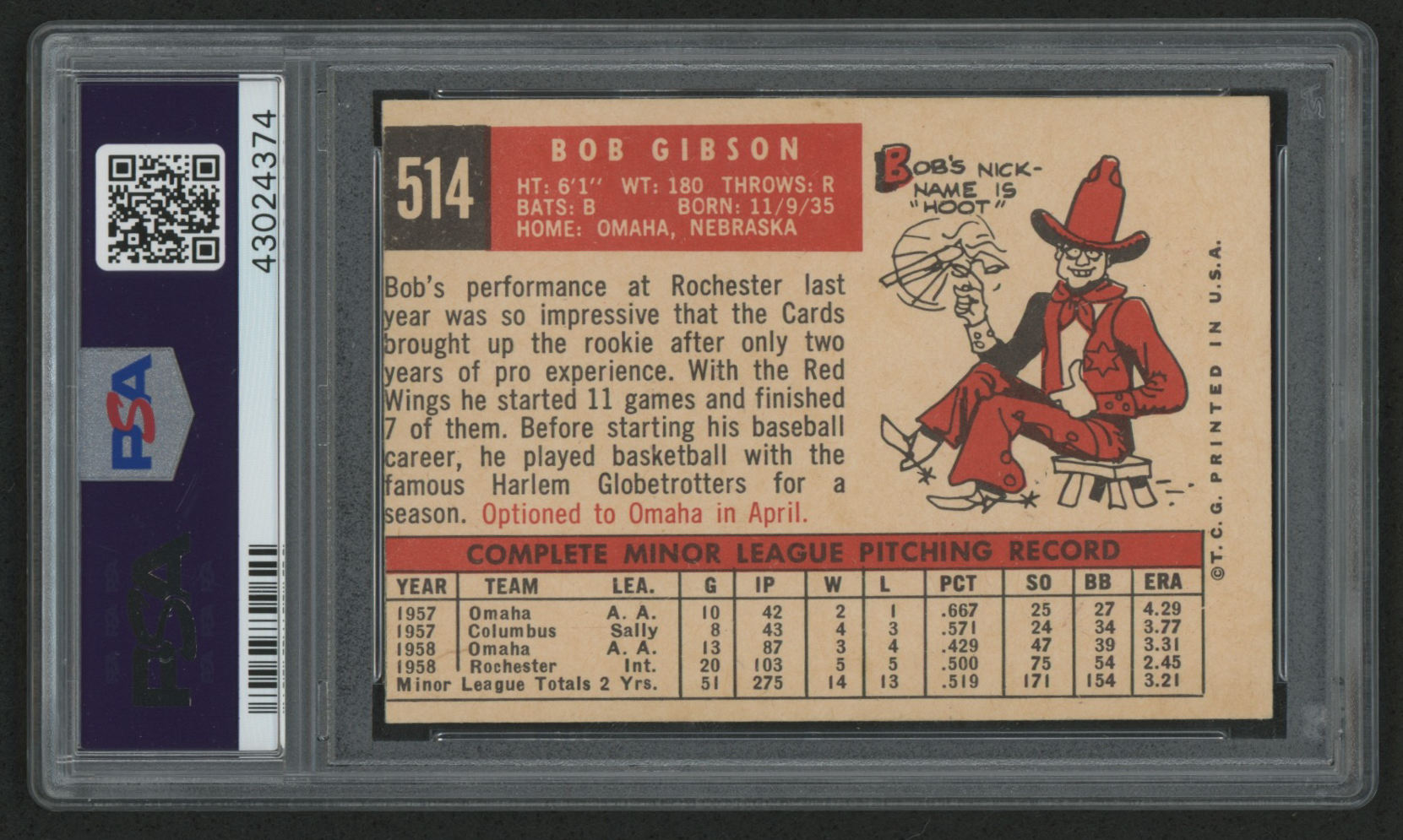1959 Topps #514 Bob Gibson RC (PSA 8) (MC)