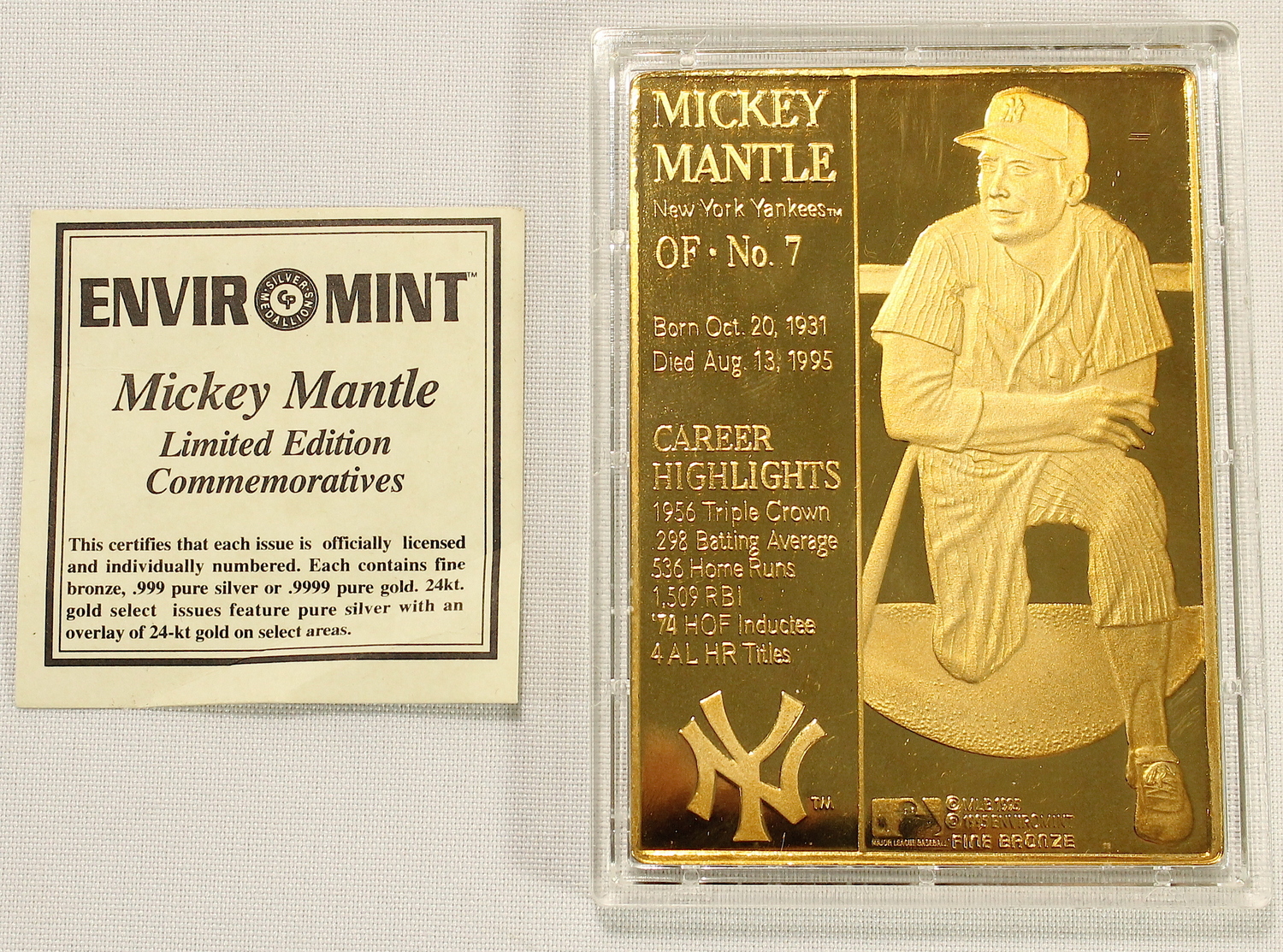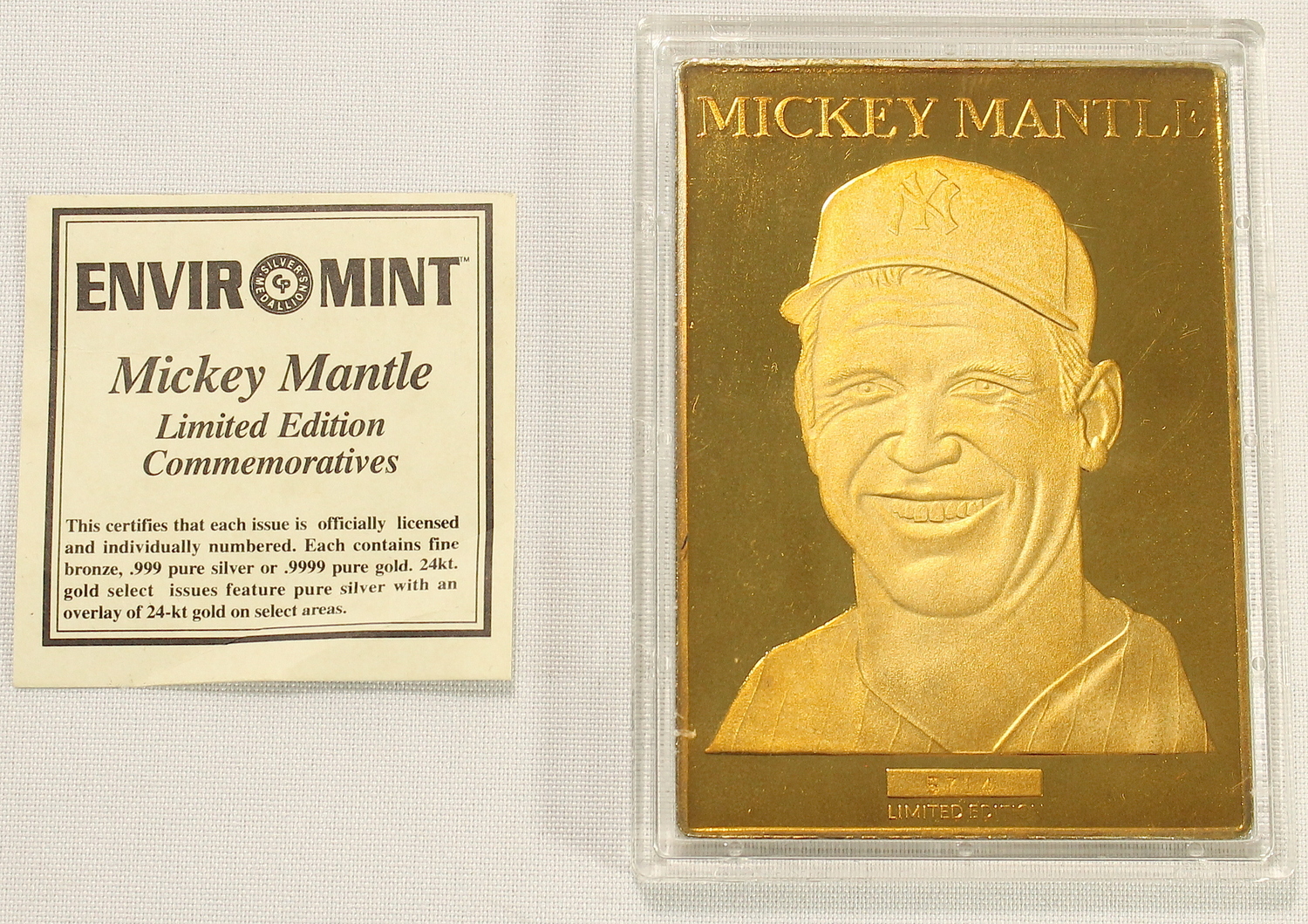 Mickey Mantle Limited Edition Environmint Bronze Baseball Card with Original Case