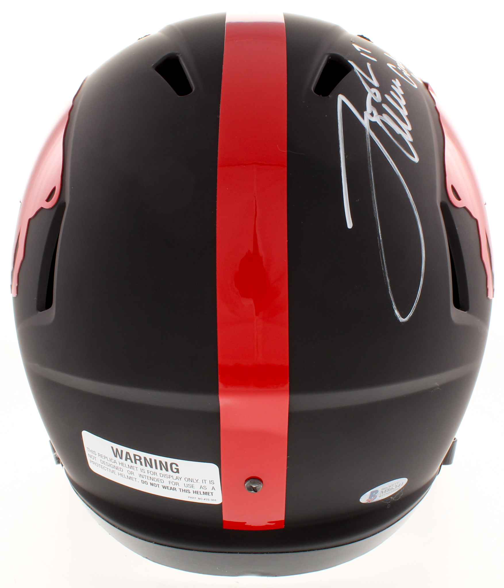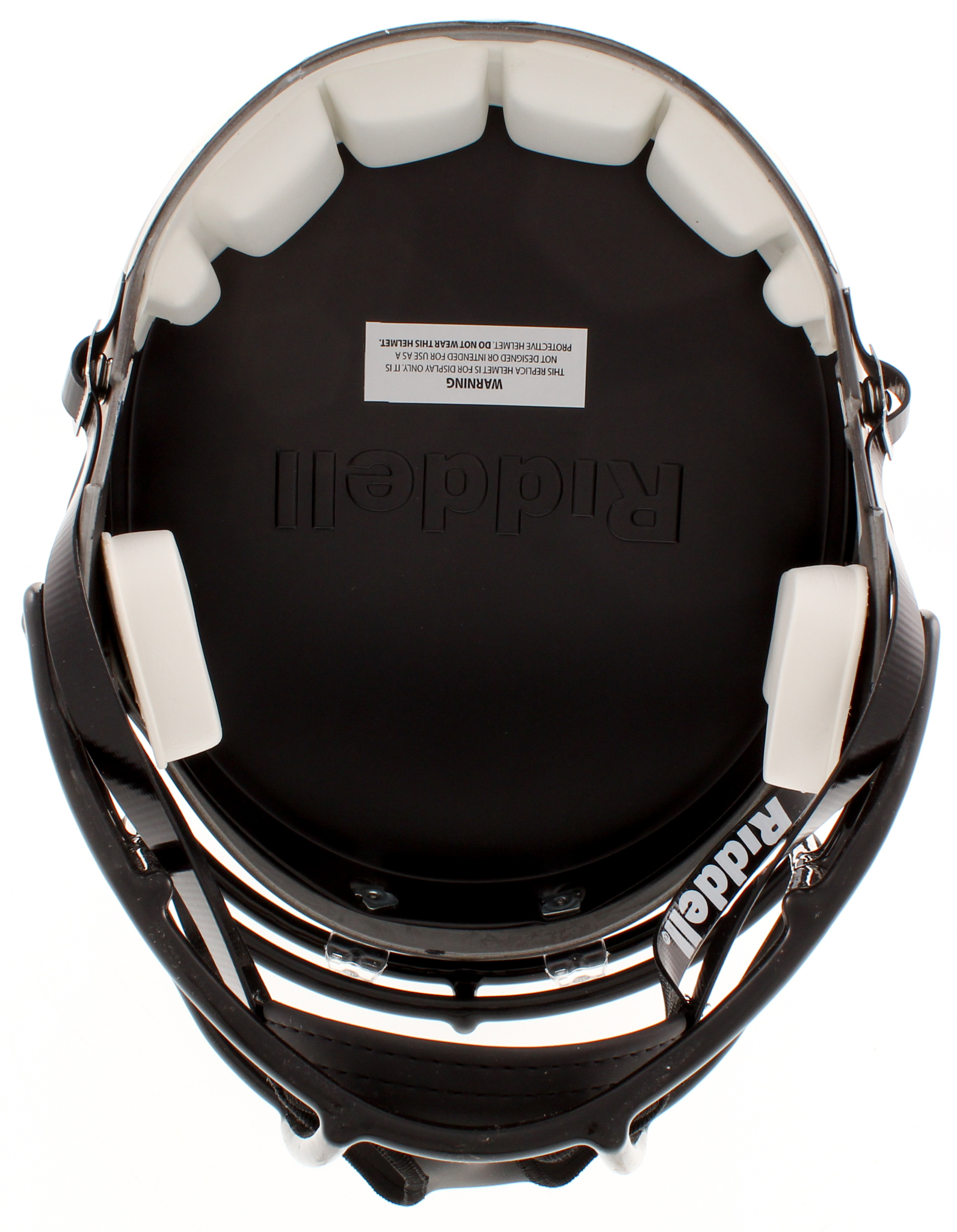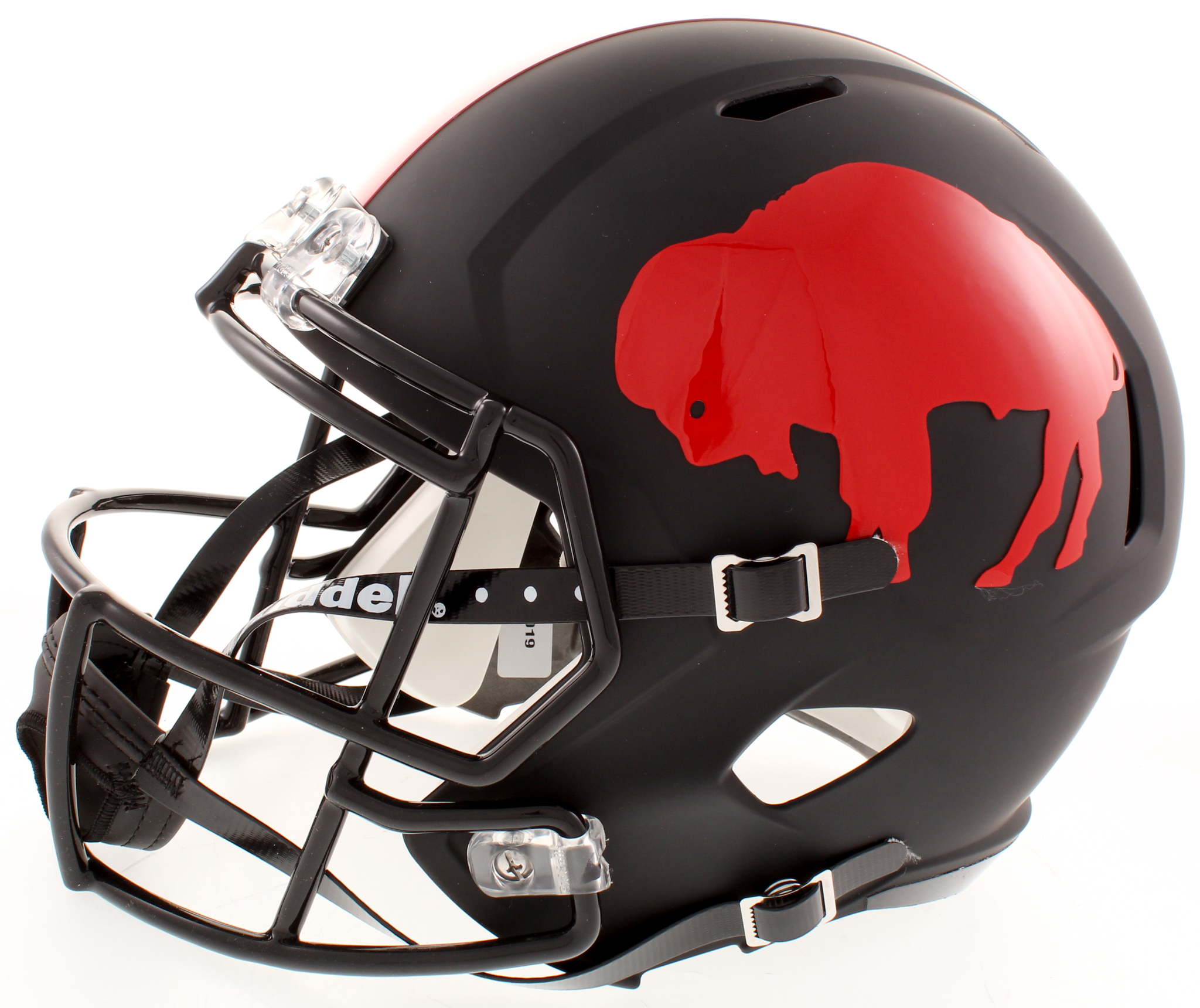 Riddell Buffalo Bills full-size replica matte black speed helmet. Hand-signed and inscribed in white paint pen by Josh Allen.