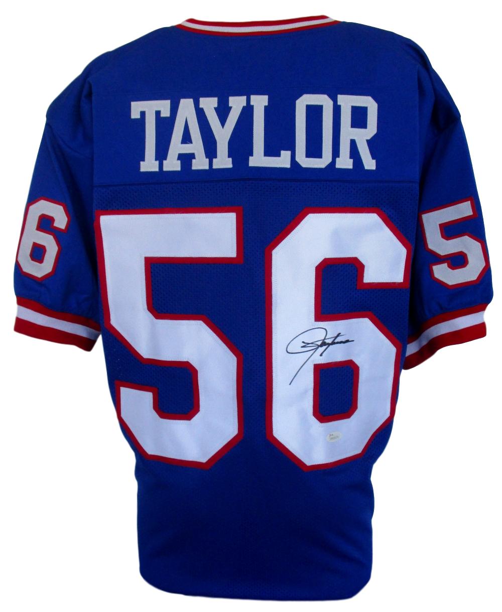 Custom on-field style jersey. Everything sewn on, size XL. Hand-signed in black felt-tip pen by Lawrence Taylor (HOF).