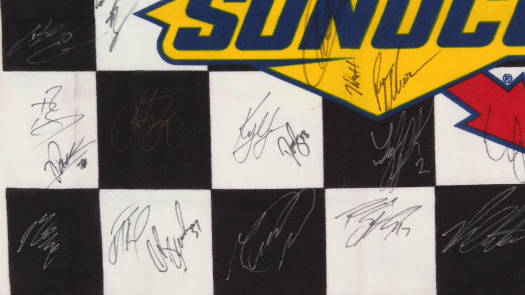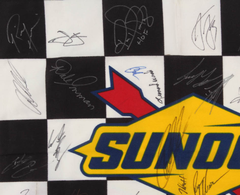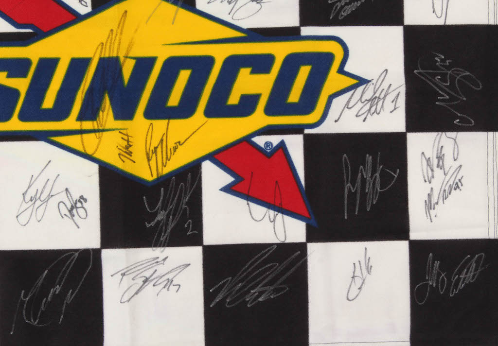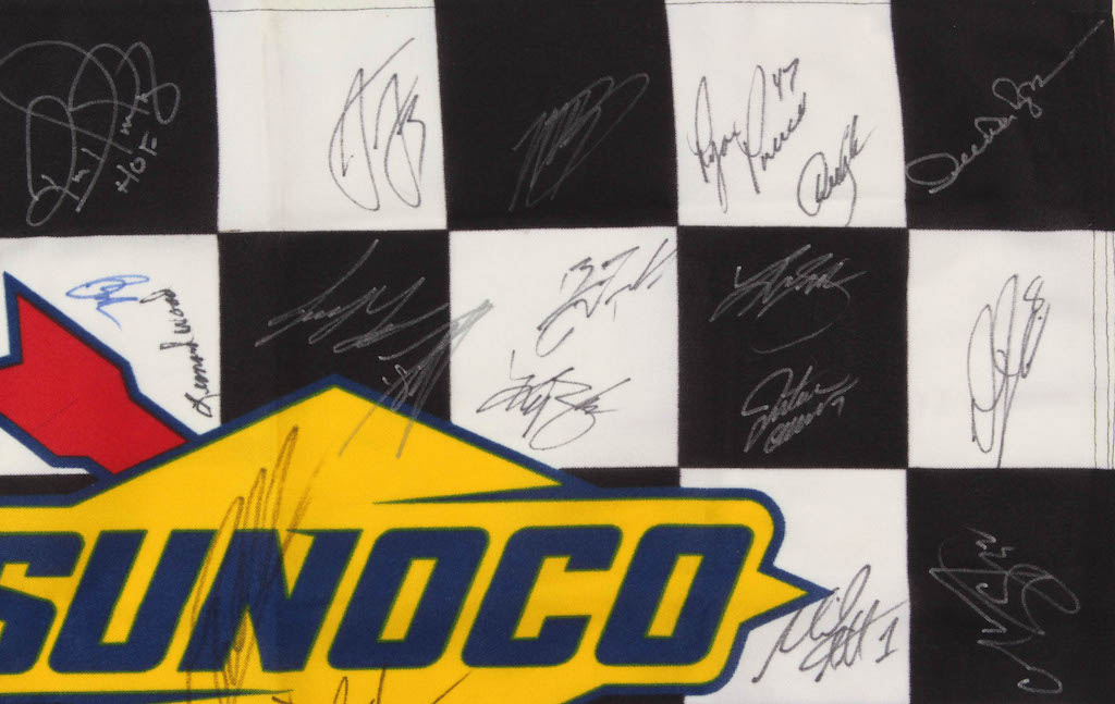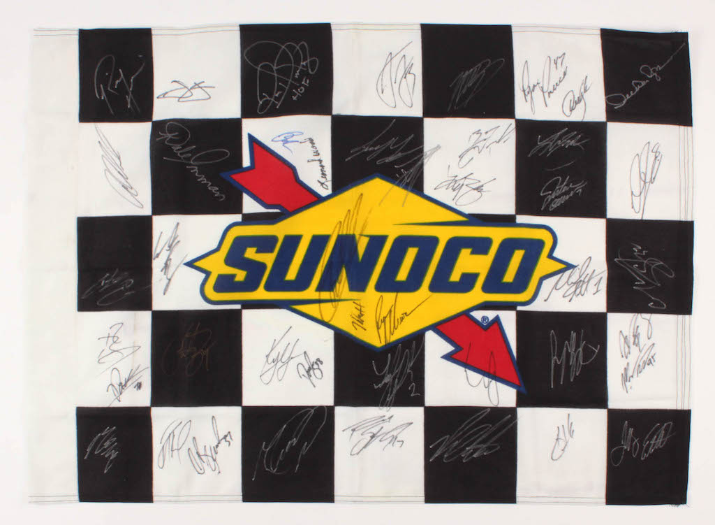 Sunoco checkered flag measures 23" x 32" in size and has been hand-signed by (44) with Jimmie Johnson, Austin Dillon, Joey Logano, Rick Hendrick, Leonard Wood, Ron Hornaday, Martin Truex Jr., Ryan Preece, Denny Hamlin, Derrike Cope, Aric Almirola, Dale Inman, Brad Keselowski, Daniel Suarez, Ty Dillon, Kurt Busch, Justin Allgaier, Daniel Hemric, Chase Elliott, William Bryon, Christopher Bell, Mike Helton, Ryan Newman, Michael Annett, Corey LaJoie, Ryan Blaney, Parker Kligerman, Clint Bowyer, Kyle Larson, David Ragan, Tyler Reddick, Erik Jones, Darrell Wallace Jr., Alex Bowman, Matt DiBenedetto, Matt Tifft, Paul Menard, Chris Buescher, Michael McDowell, Rickey Stenhouse Jr., Ross Chastain, Kevin Harvick and Jeffery Earnhardt.