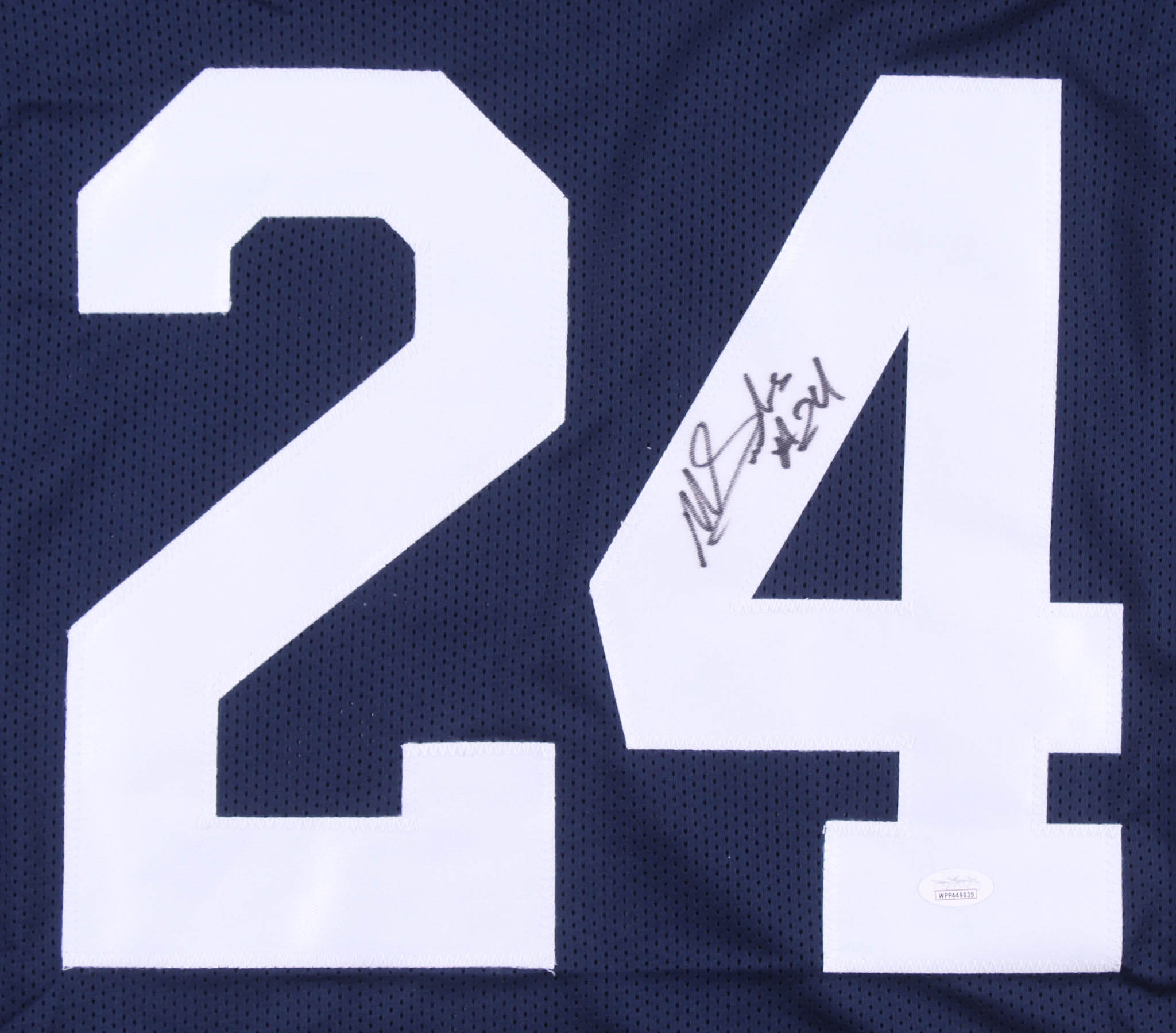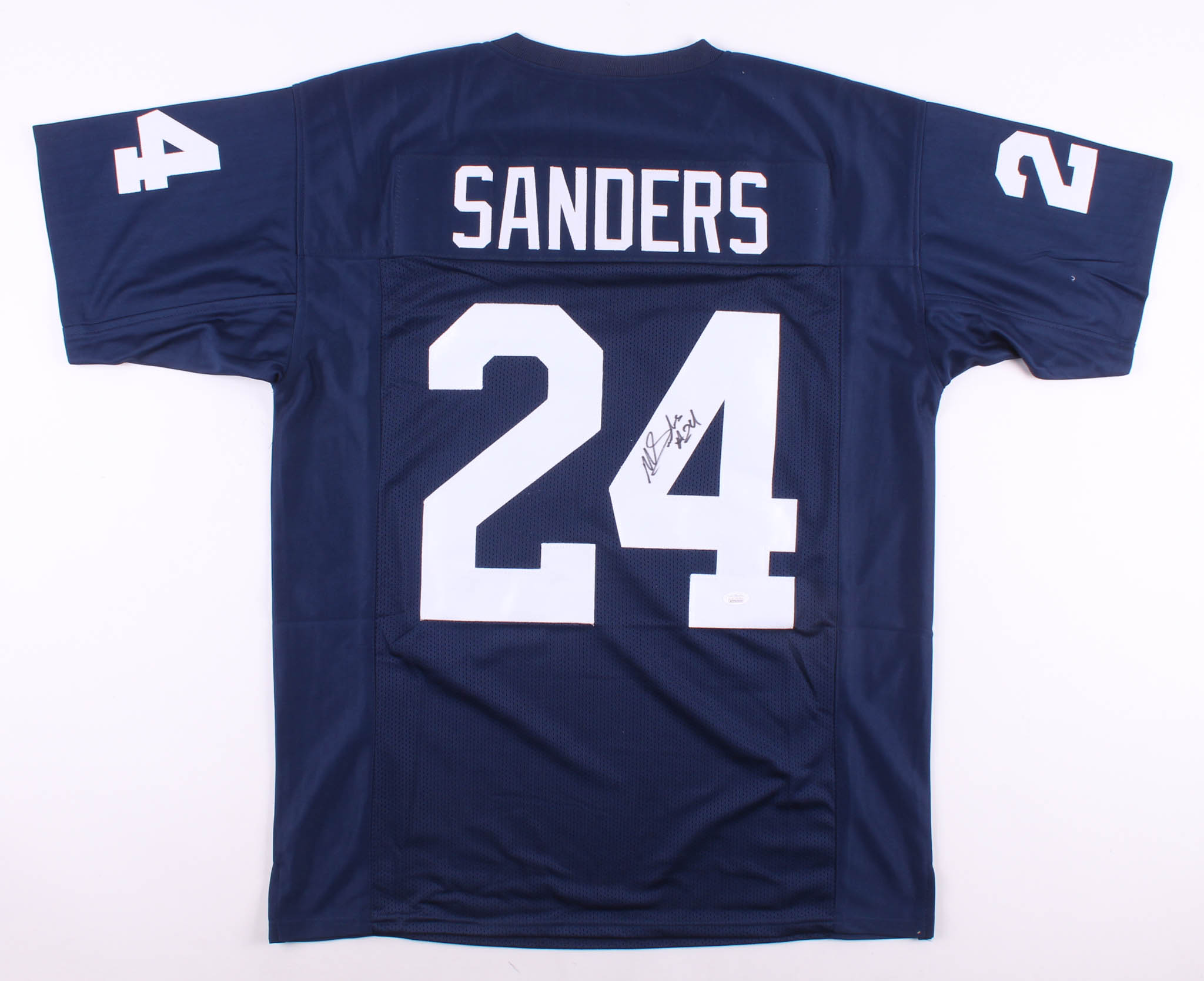 Custom on-field style jersey. Everything is sewn on, size XL. Hand-signed in black felt-tip pen by Miles Sanders.
