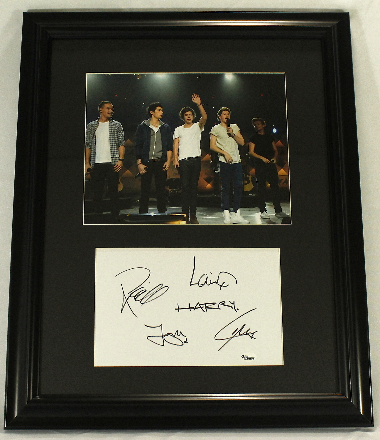 "One Direction" Band-Signed 17x21 Custom Framed Display with Harry Styles, Louis Tomlinson, Liam Payne, Zayn Malik & Niall Horan (Online Authentics COA)