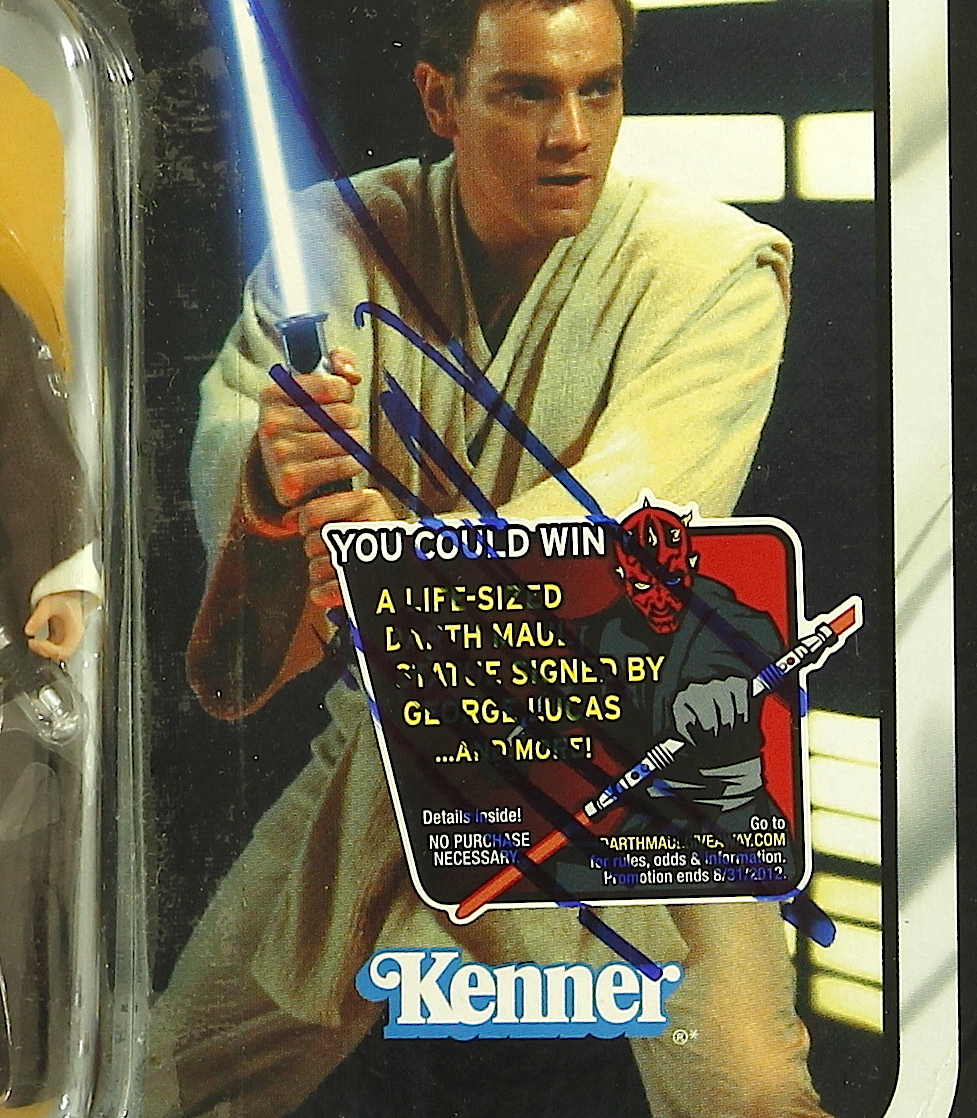 Obi-Wan Kenobi Star Wars Action Figure hand-signed in blue felt-tip pen by Ewan McGregor. The autograph includes an official James Spence Authentication (JSA) hologram and matching COA for authenticity purposes.