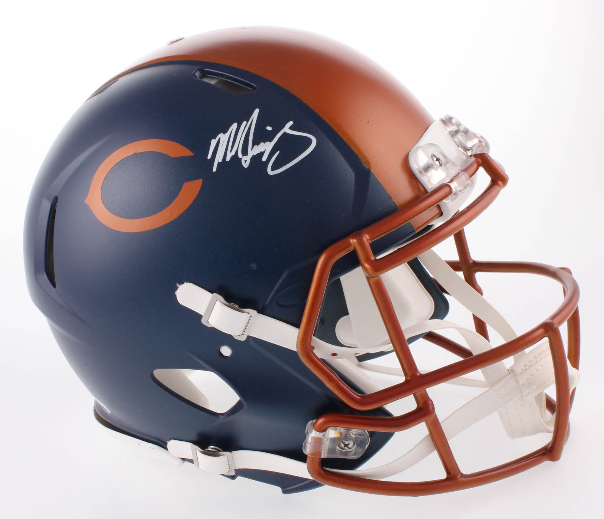 Riddell Chicago Bears full-size authentic on-field matte blue speed helmet. Hand-signed in white paint pen by Mike Singletary (HOF).