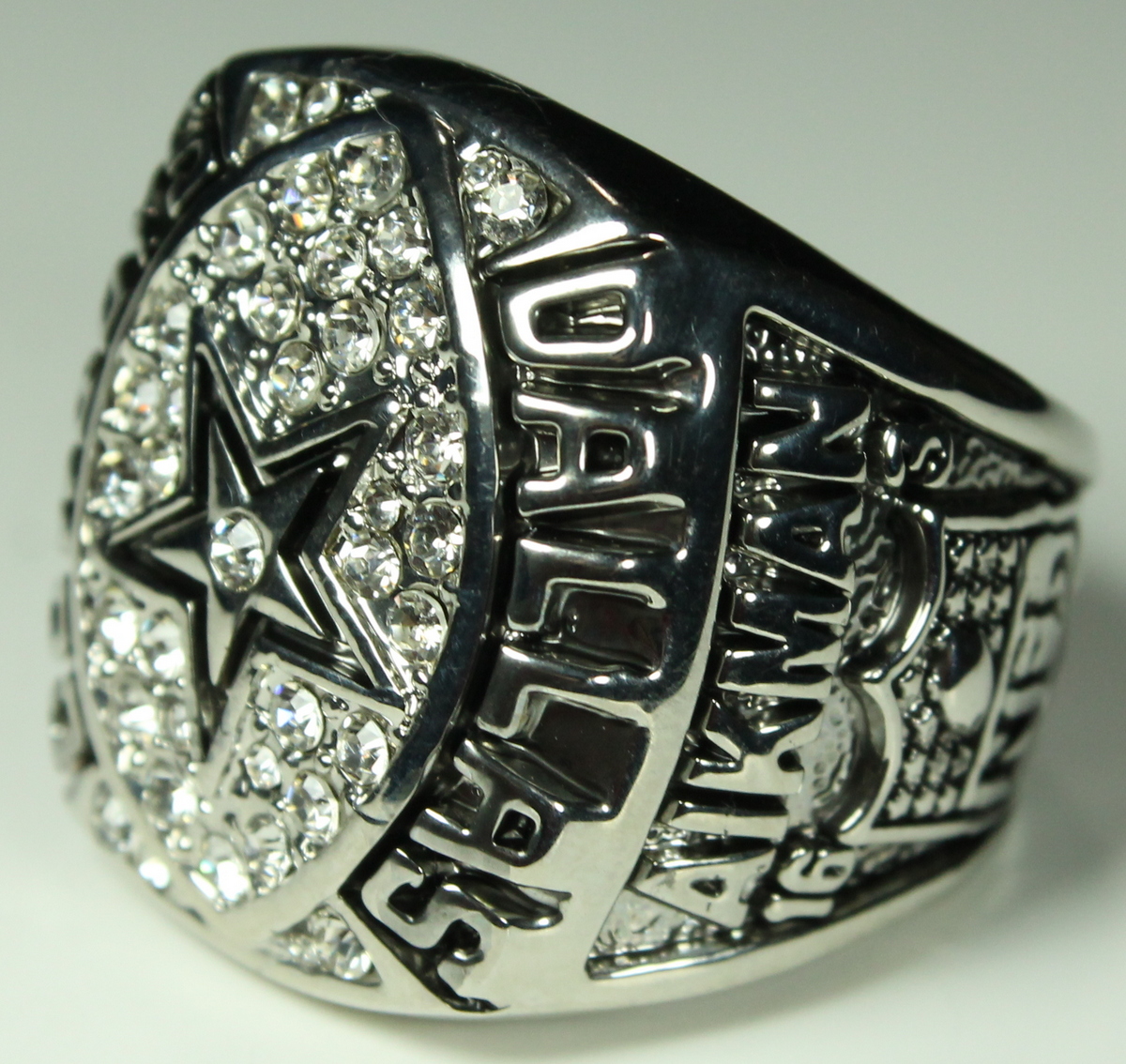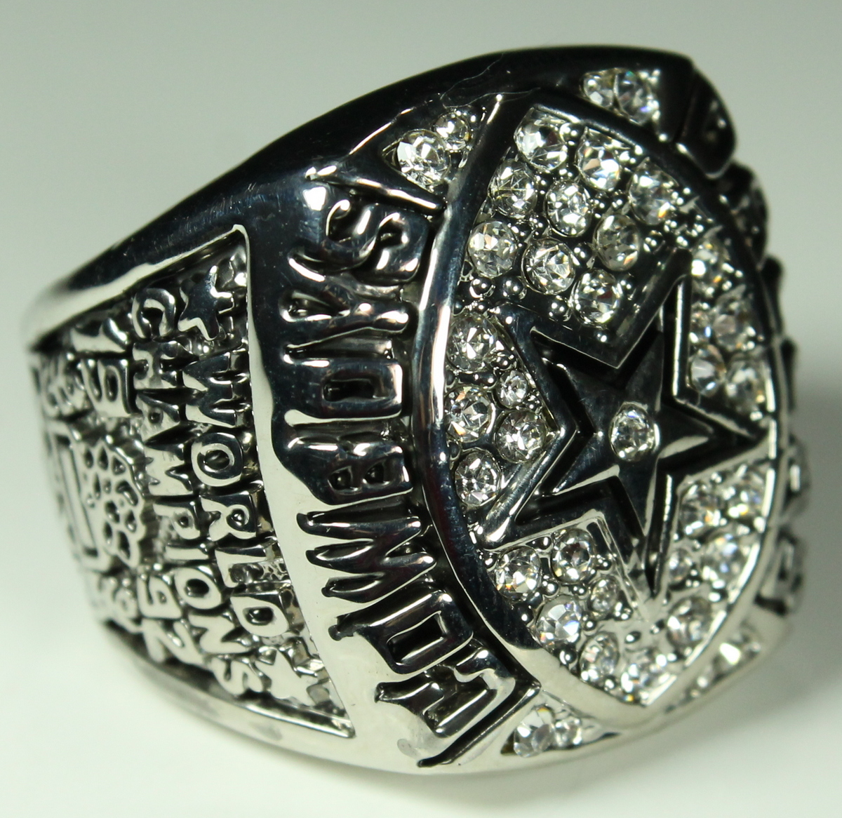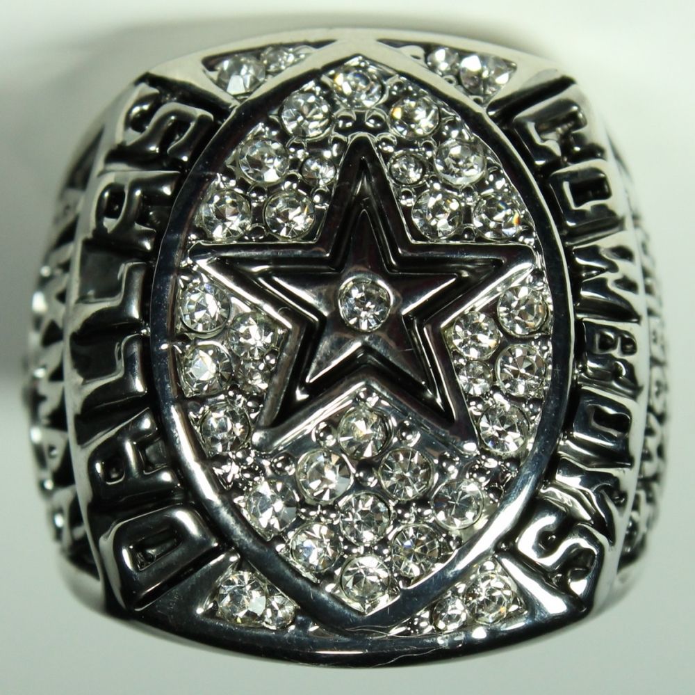 Troy Aikman Cowboys High Quality Replica 1992 Super Bowl XXVII champions Ring. The ring has been hand crafted by professional jewelers. Made of metal alloy and clad with silver. Size 11.5