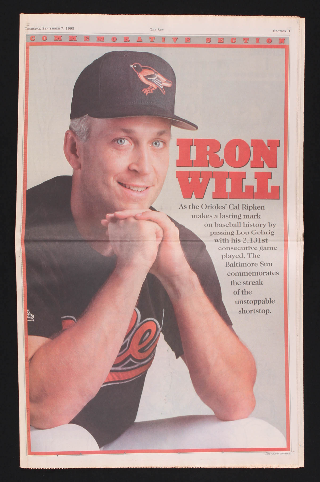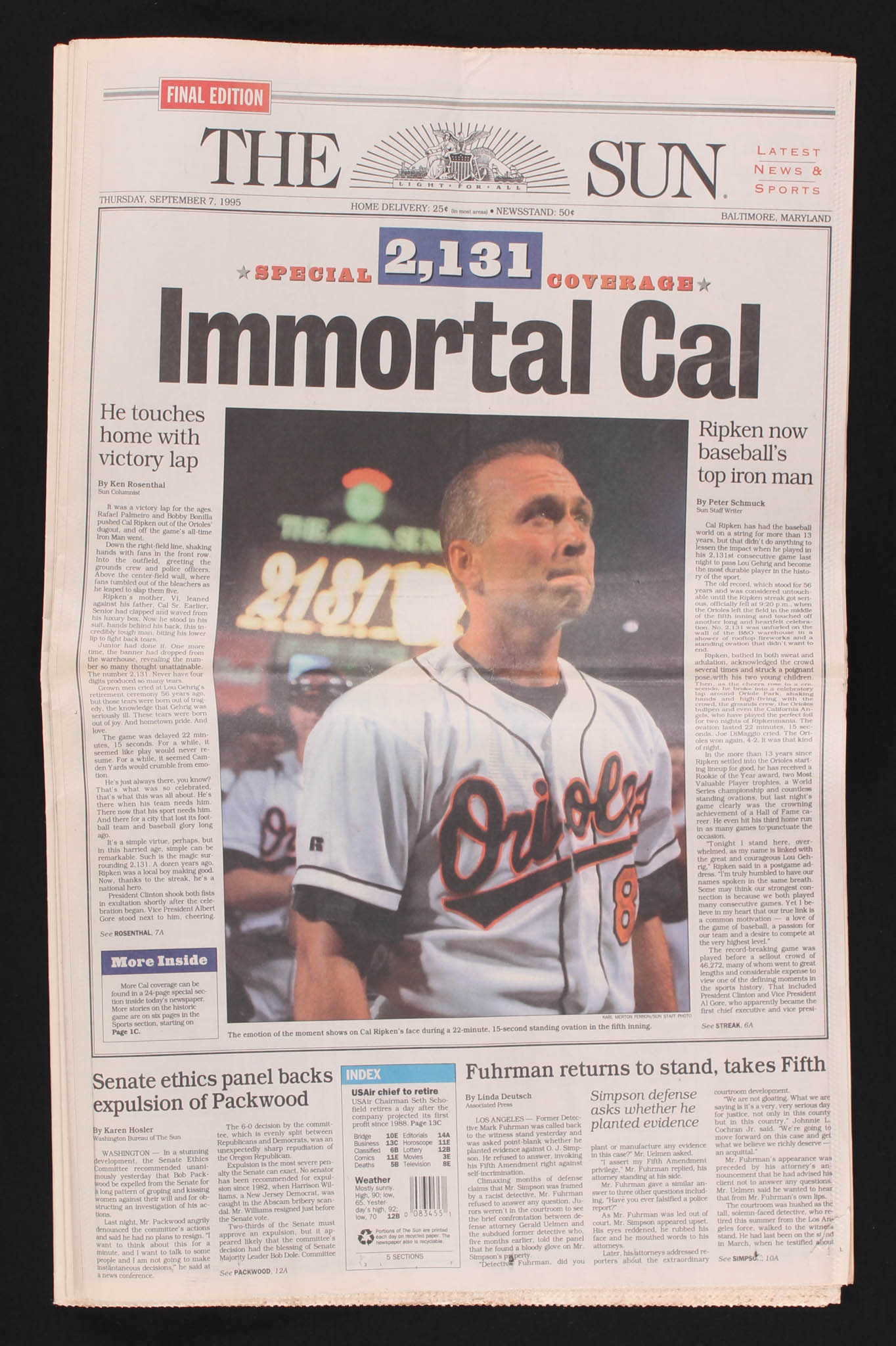 Vintage 1995 Baltimore, MD "The Sun" Newspaper. Newspaper signifies Cal Ripken Jr.'s consecutive games played streak. Please see photos for more information.
