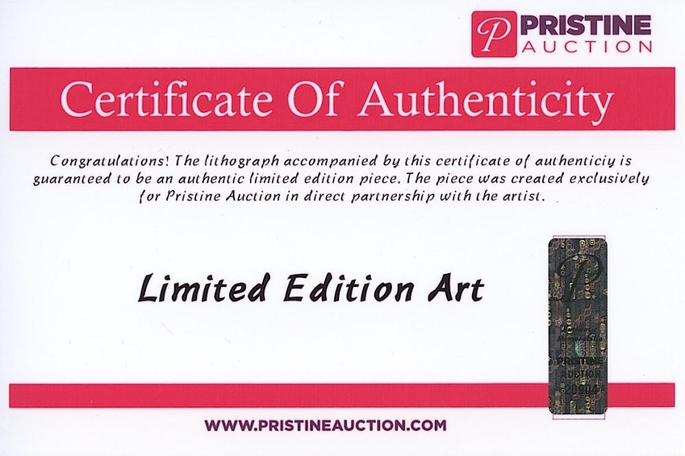 The piece was created exclusively for Pristine Auction in conjunction with the artist and includes a tamper proof serially numbered hologram and matching COA for authenticity purposes.