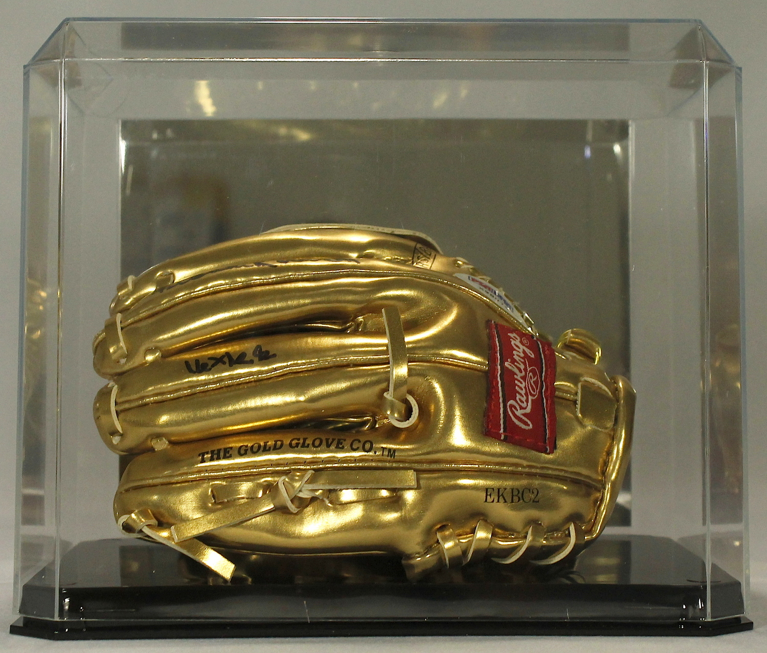 Rawlings "The Gold Glove Co." mini baseball glove. The glove measures roughly 6" long. Hand-signed and inscribed in black felt tip pen by Brooks Robinson (Orioles HOF). The glove comes with the display case shown in the photos. Autograph includes an official PSA/DNA Hologram and matching COA for authenticity purposes.
