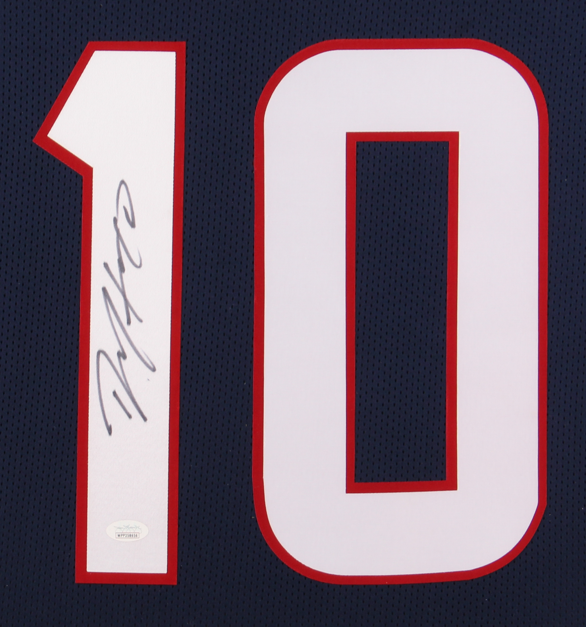 Custom frame measures 35" x 43" in size and features a jersey that has been hand-signed in black felt-tip pen by DeAndre Hopkins.